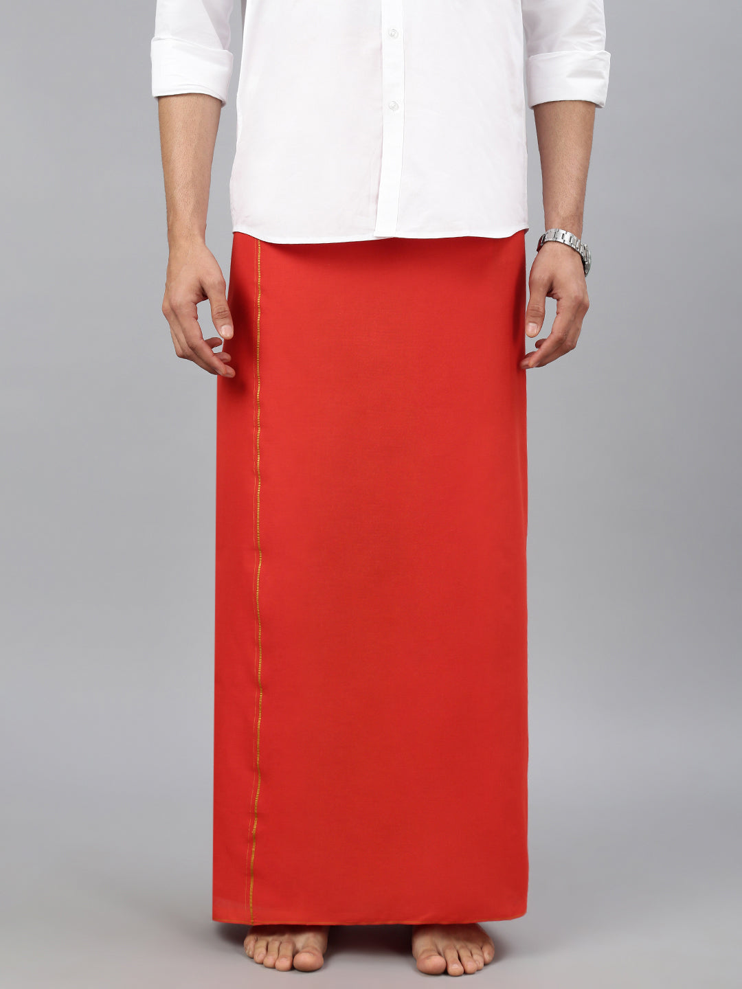 Men 100% Cotton Single Layer Red Dhoti with Assorted Small Border Amarnath SB