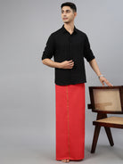 Men 100% Cotton Single Layer Red Dhoti with Assorted Small Border Maham SB