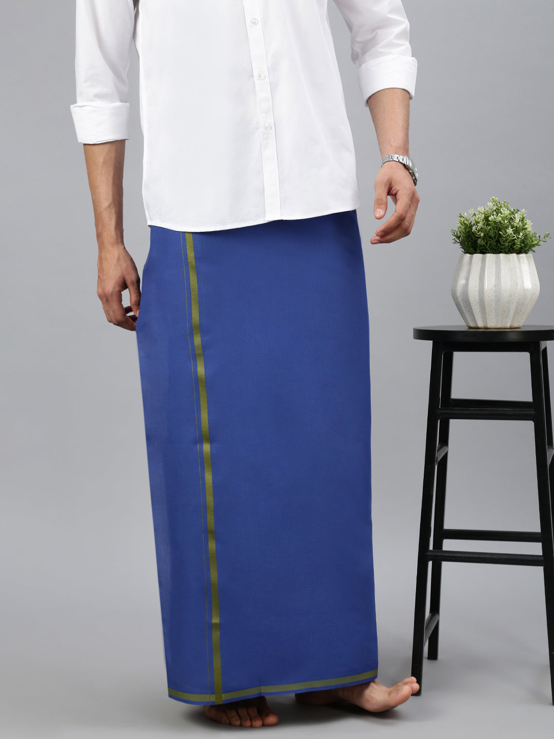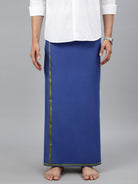 Men 100% Cotton Single Layer Royal Blue Dhoti with Assorted Big Border Amarnath BB