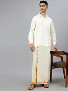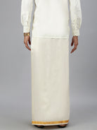 Men Art Silk Readymade Double Layer Cream Dhoti with Gold Jari Border