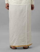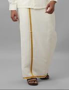 Men Cotton Blend Single Layer Cream Dhoti with 1/2" Gold Jari Border Gupta