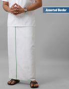 Men Cotton Blend Single Layer White Dhoti with Assorted Border Zippy (Pack of 2)