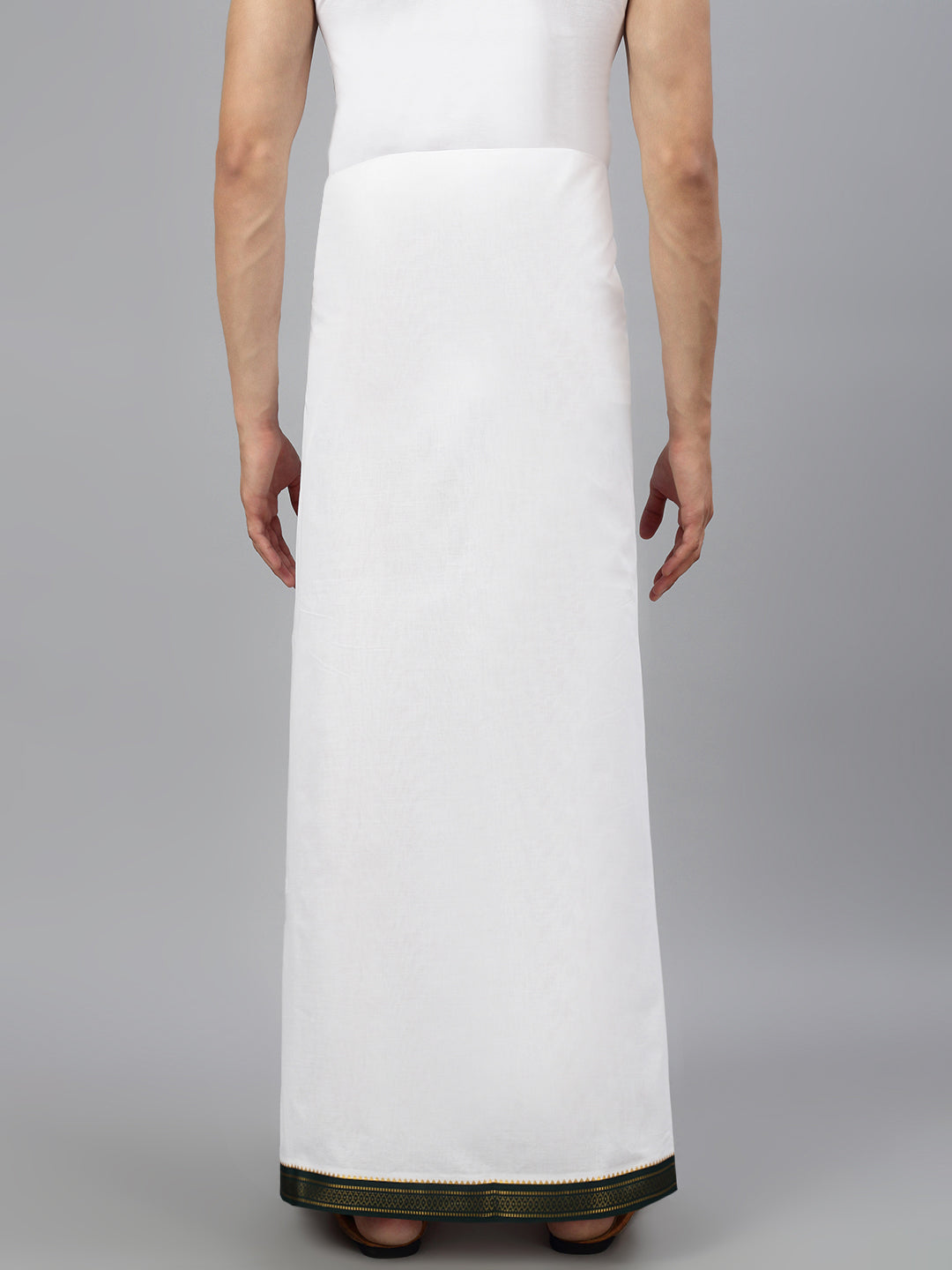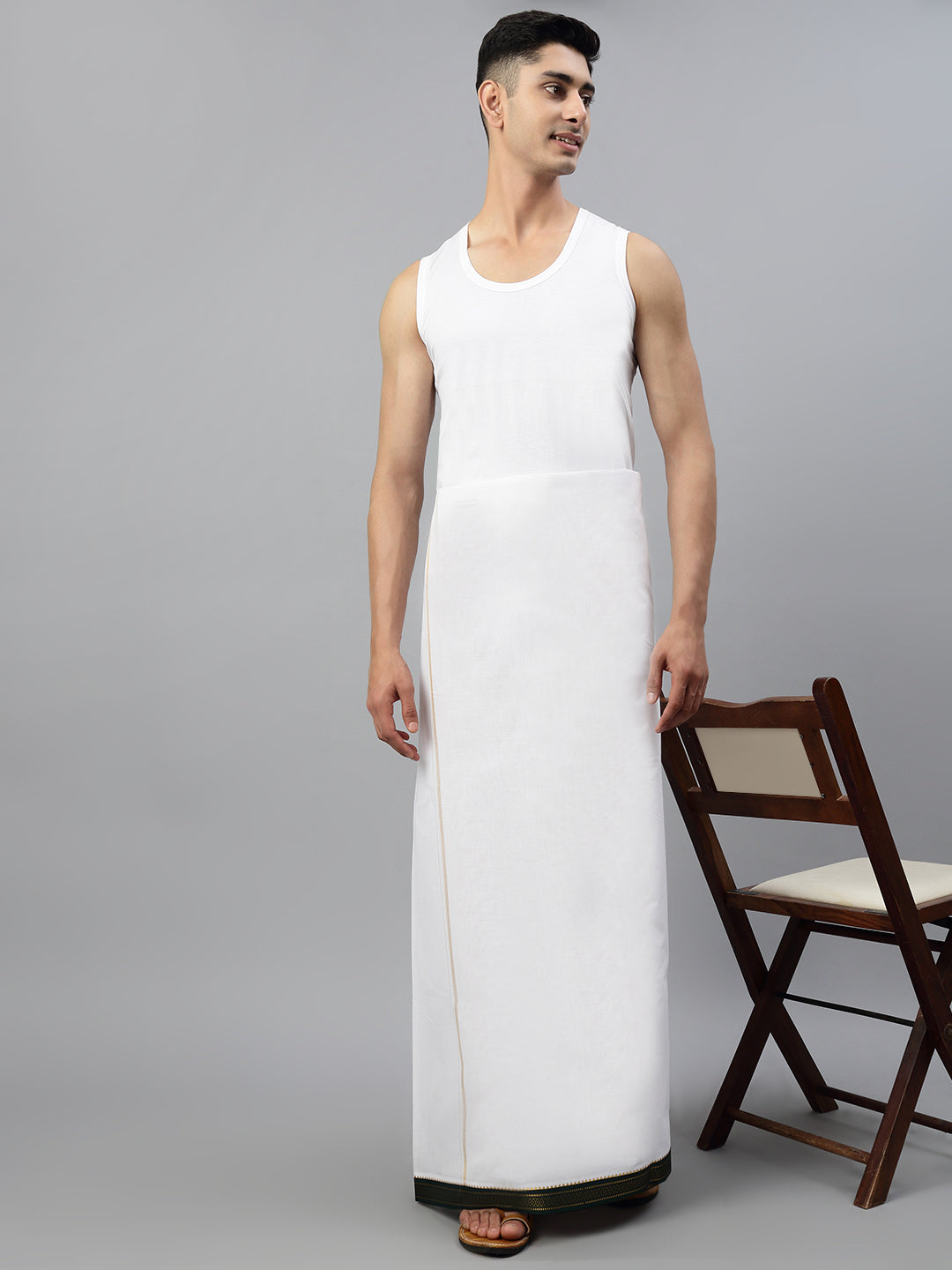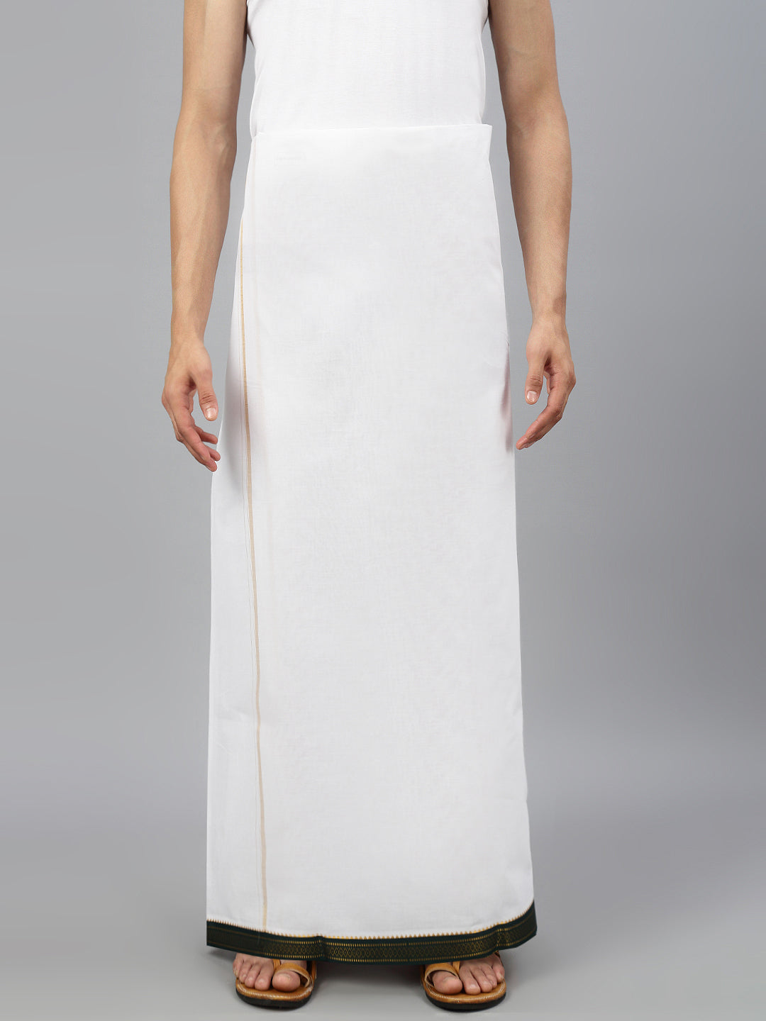 Men Cotton Double Layer White Dhoti with Fancy Jari Border Sasanam