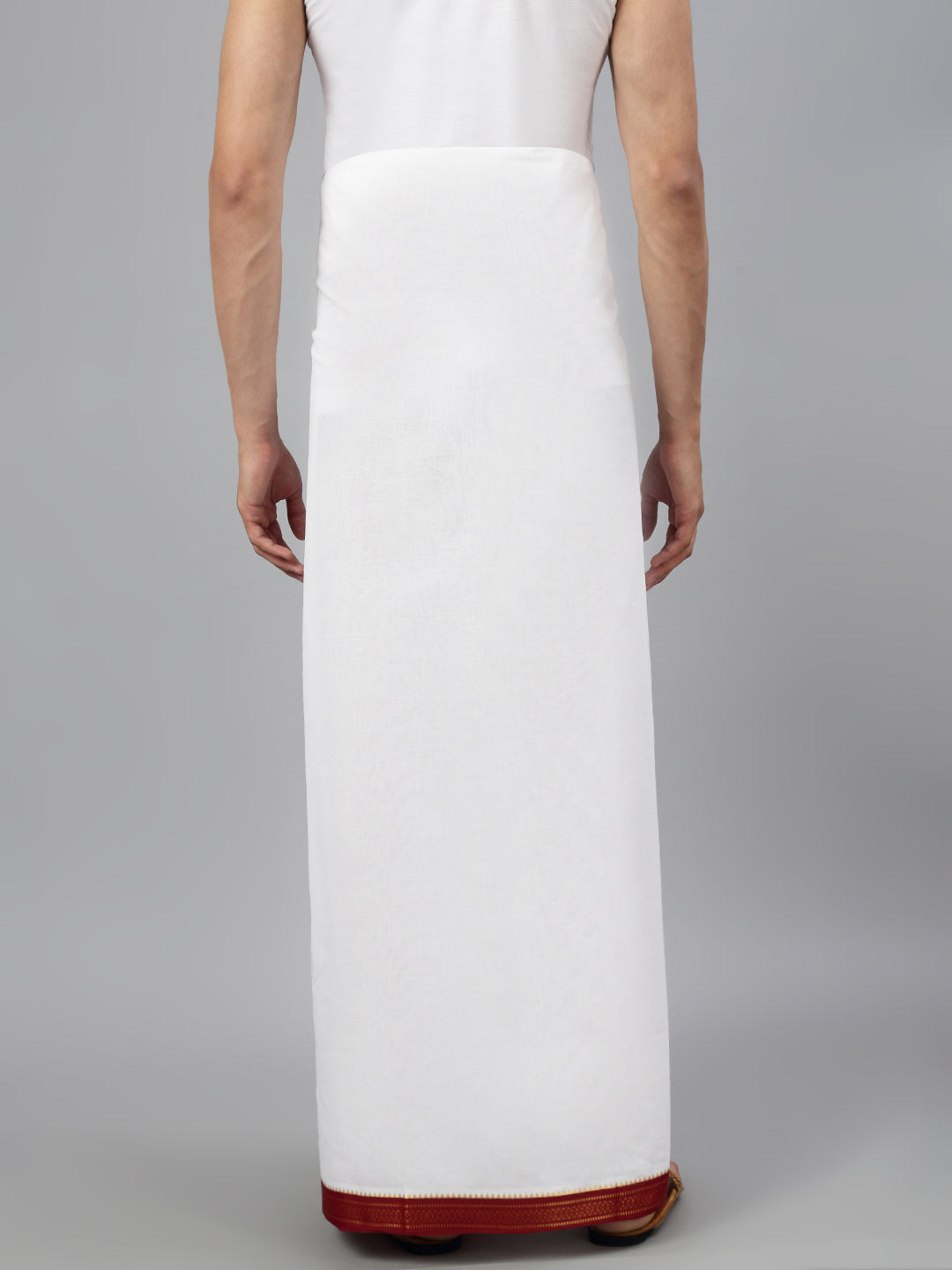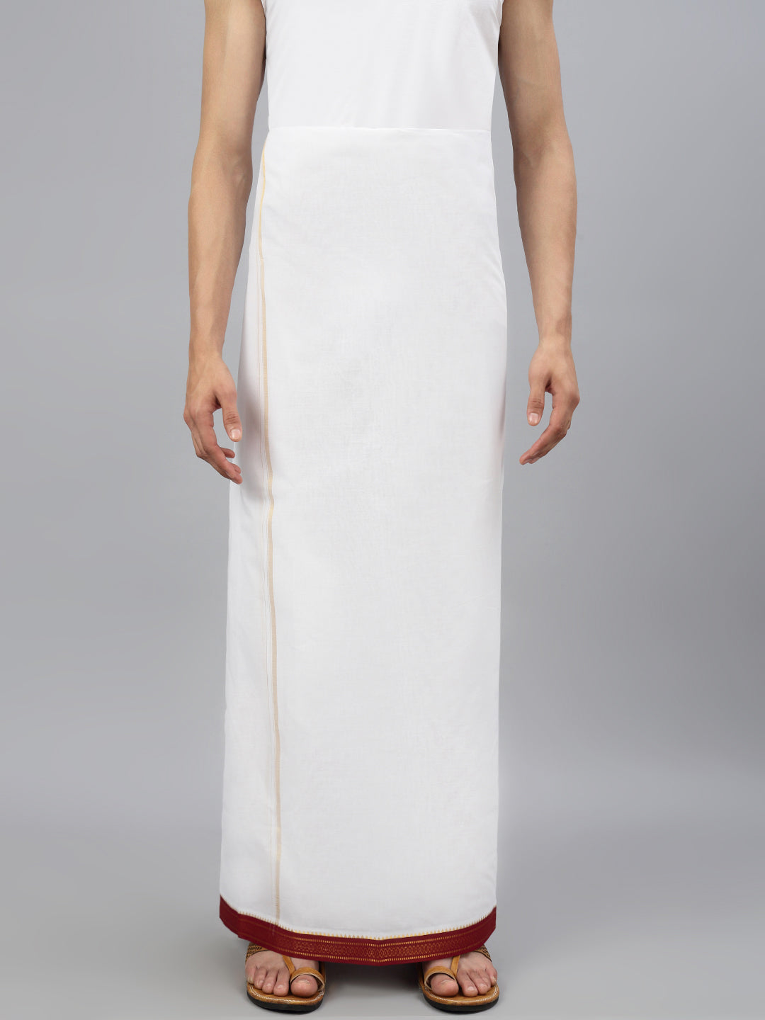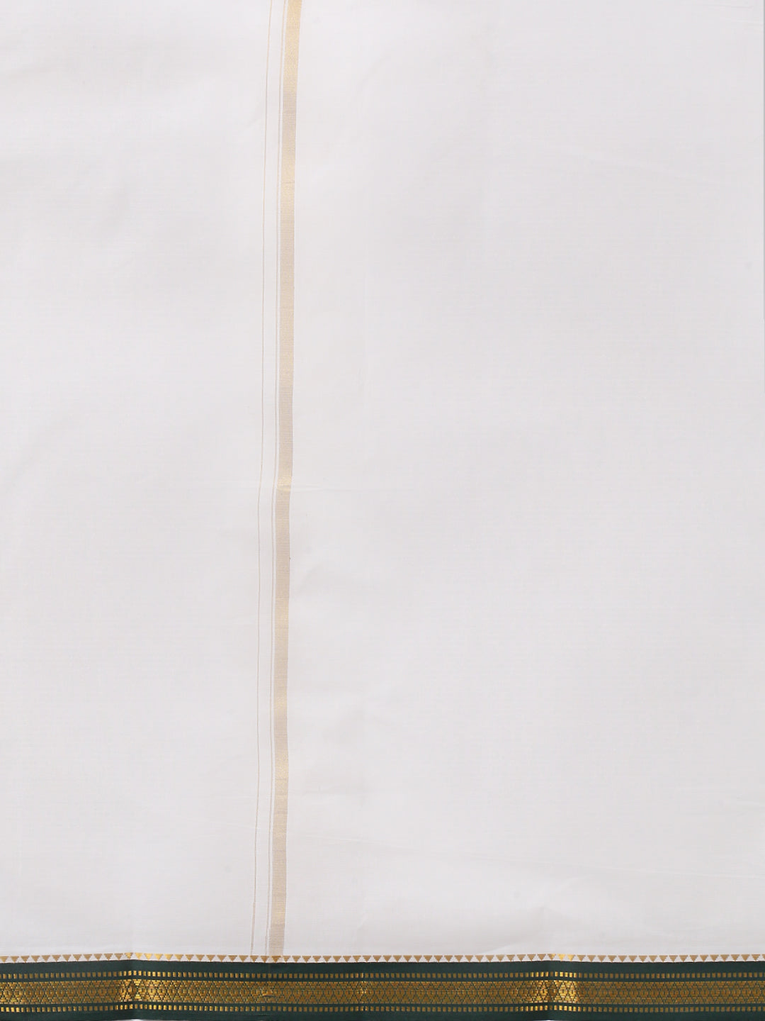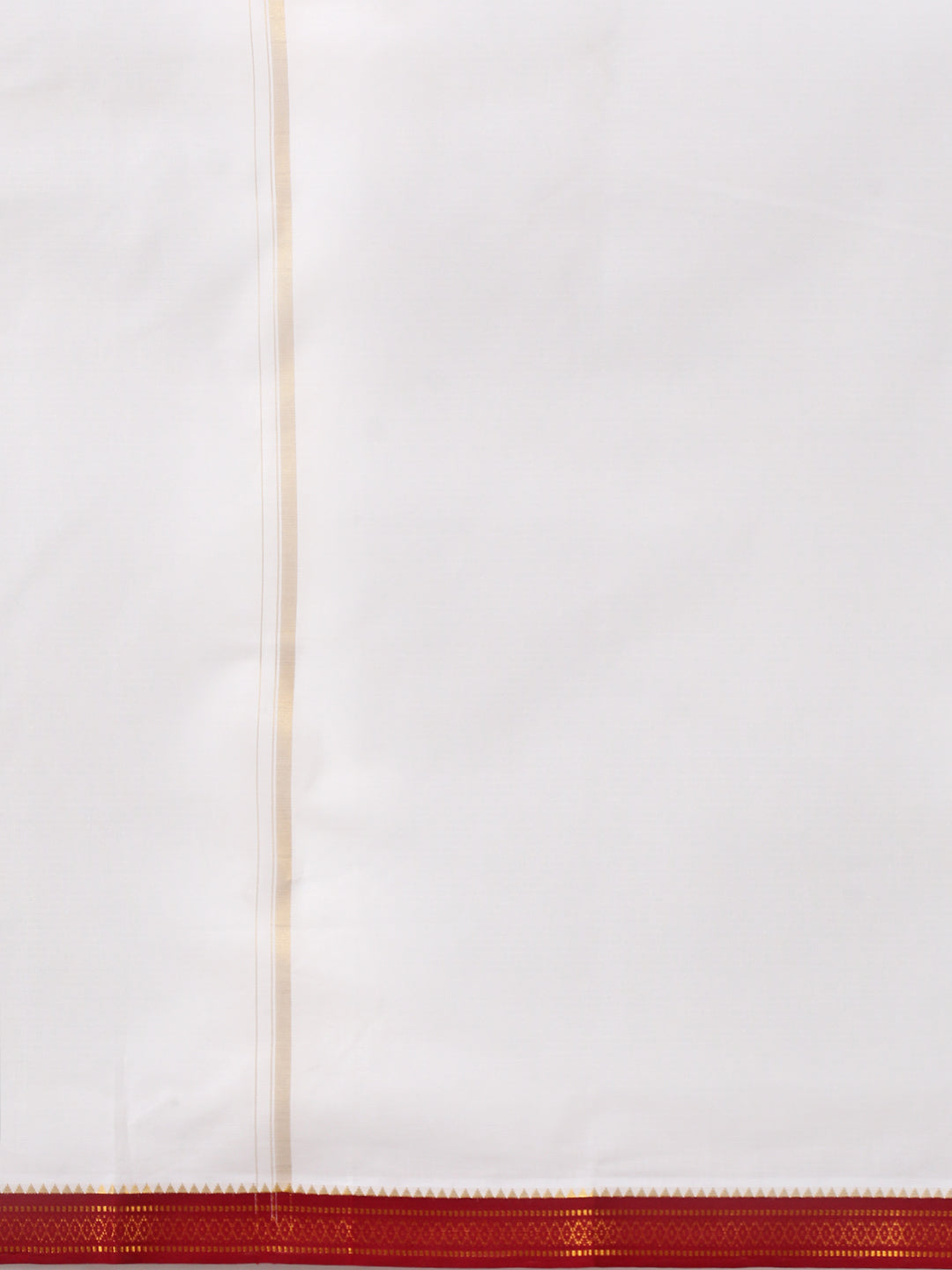 Men Cotton Double Layer White Dhoti with Fancy Jari Border Sasanam