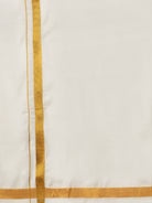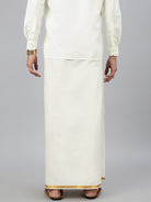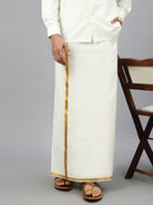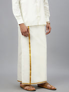 Men Readymade Single Layer Cream Dhoti with Gold Jari Border
