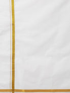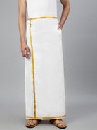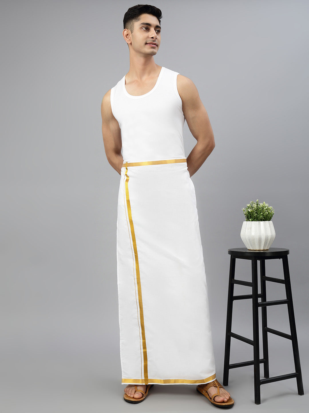 Men Readymade Single Layer White Dhoti with Gold Jari Border