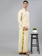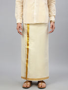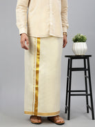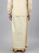Men Tissue Single Layer Gold Dhoti with Jari Border