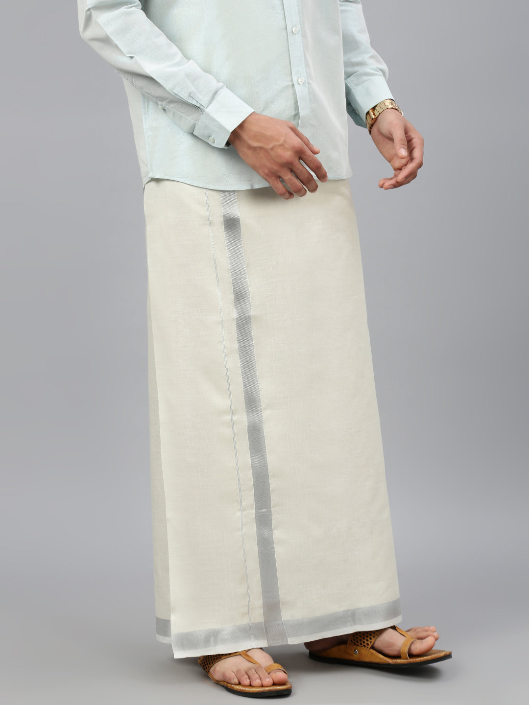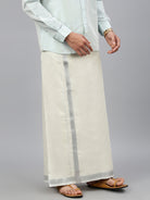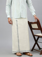 Men Tissue Single Layer Silver Dhoti with Jari Border