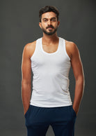 Men 100% Combed Cotton White Vest RN Zest Pack of 2