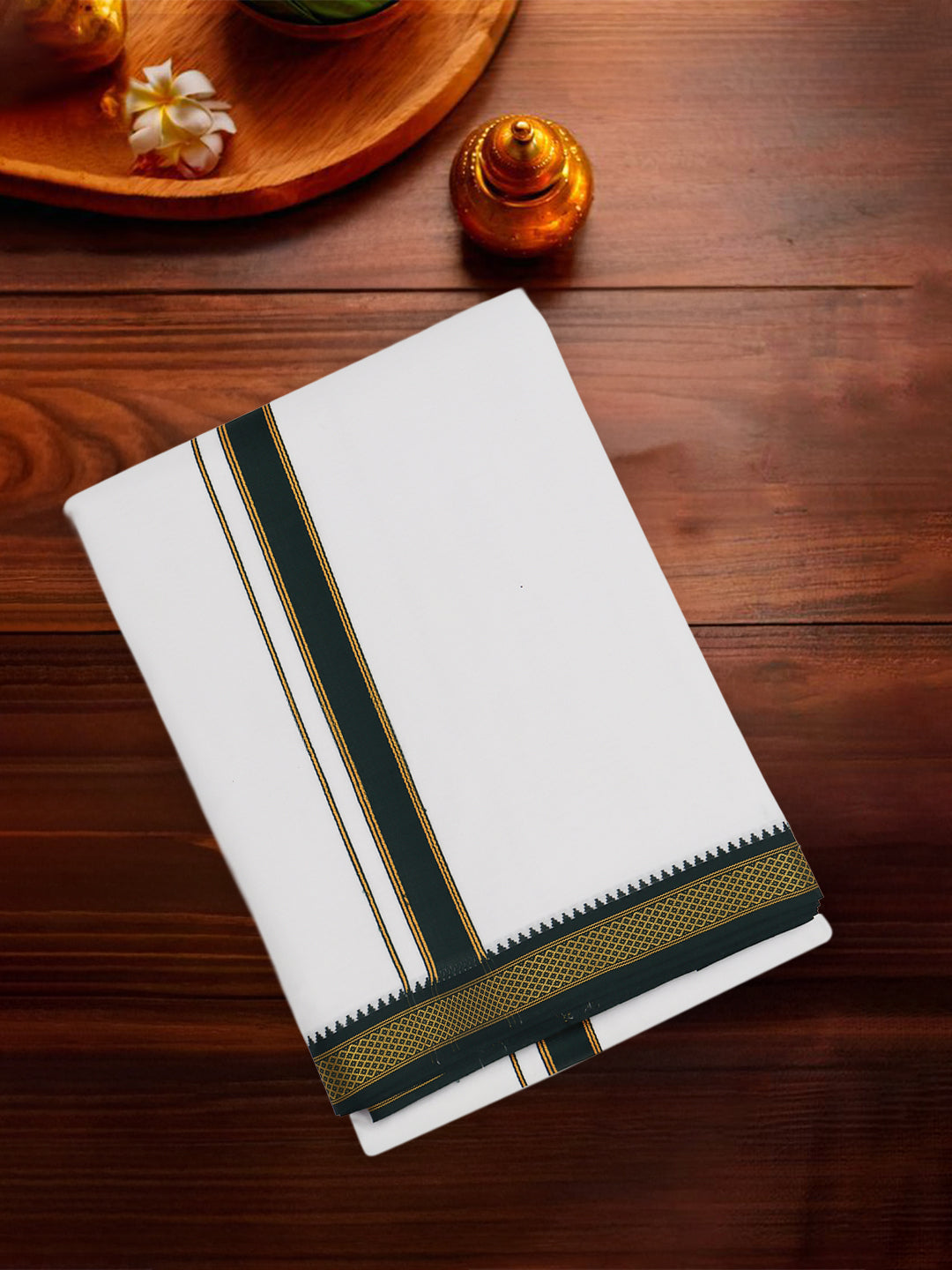 Men Mayilkhan Border White Panchakacham with Towel Set(9+5) Wheel
