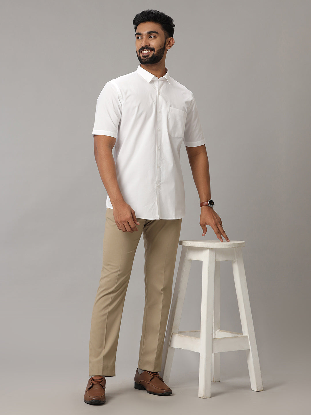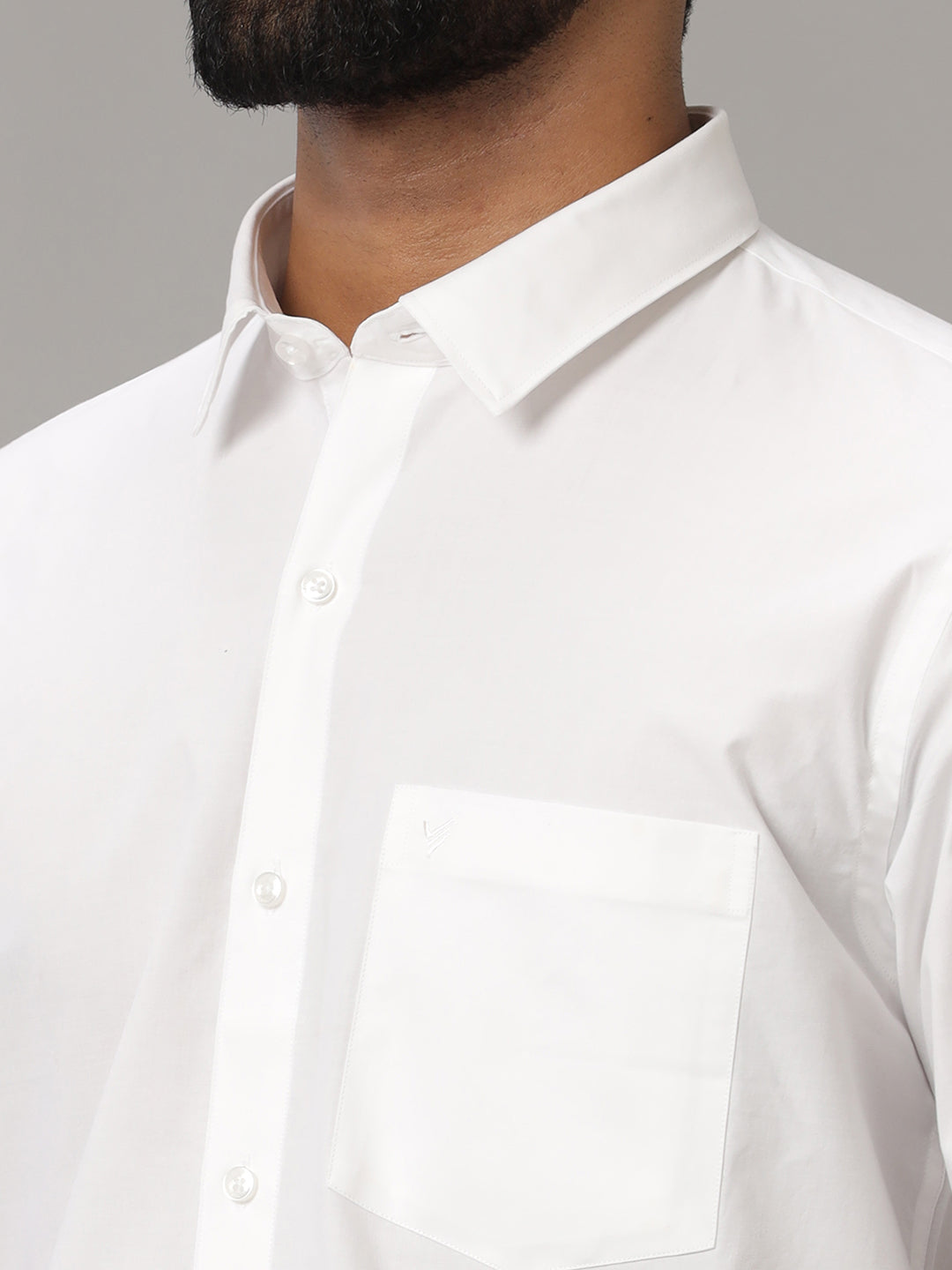 Men 100% Cotton Half Sleeves White Shirt Great White