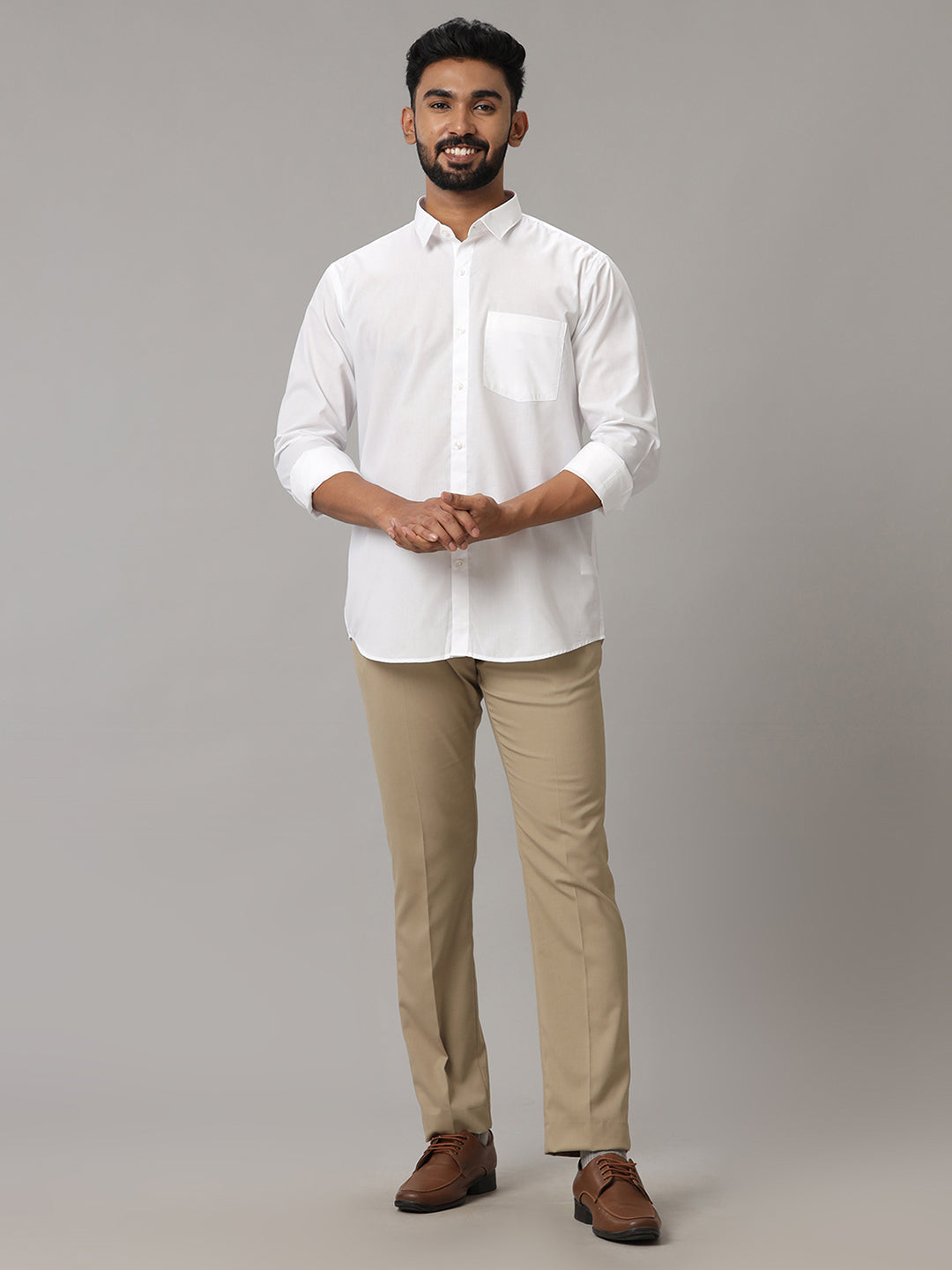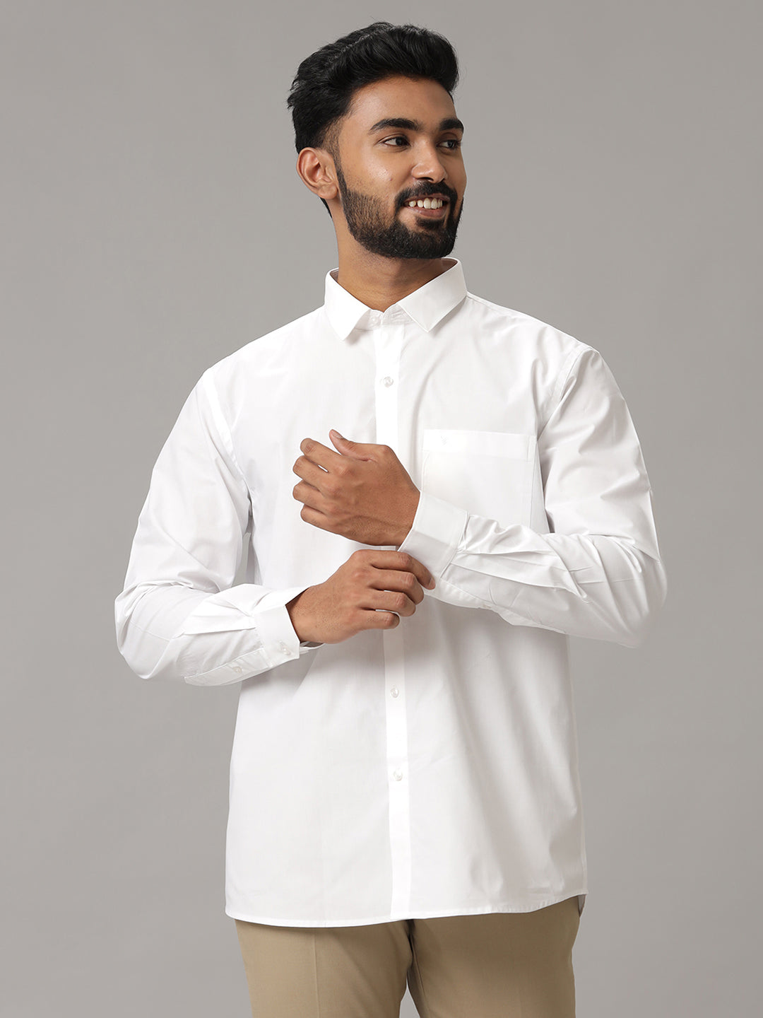 Men 100% Cotton Full Sleeves White Shirt Great White