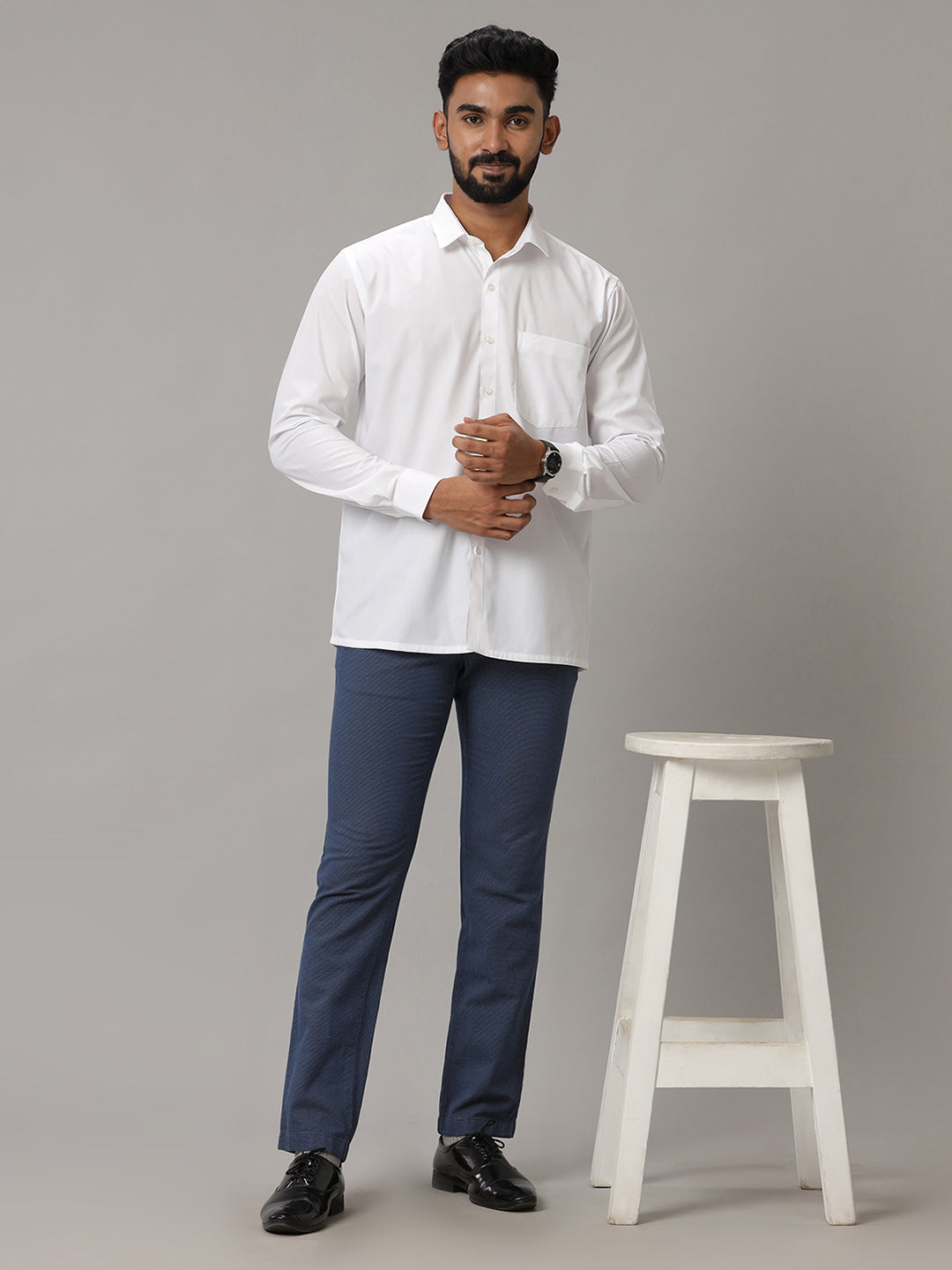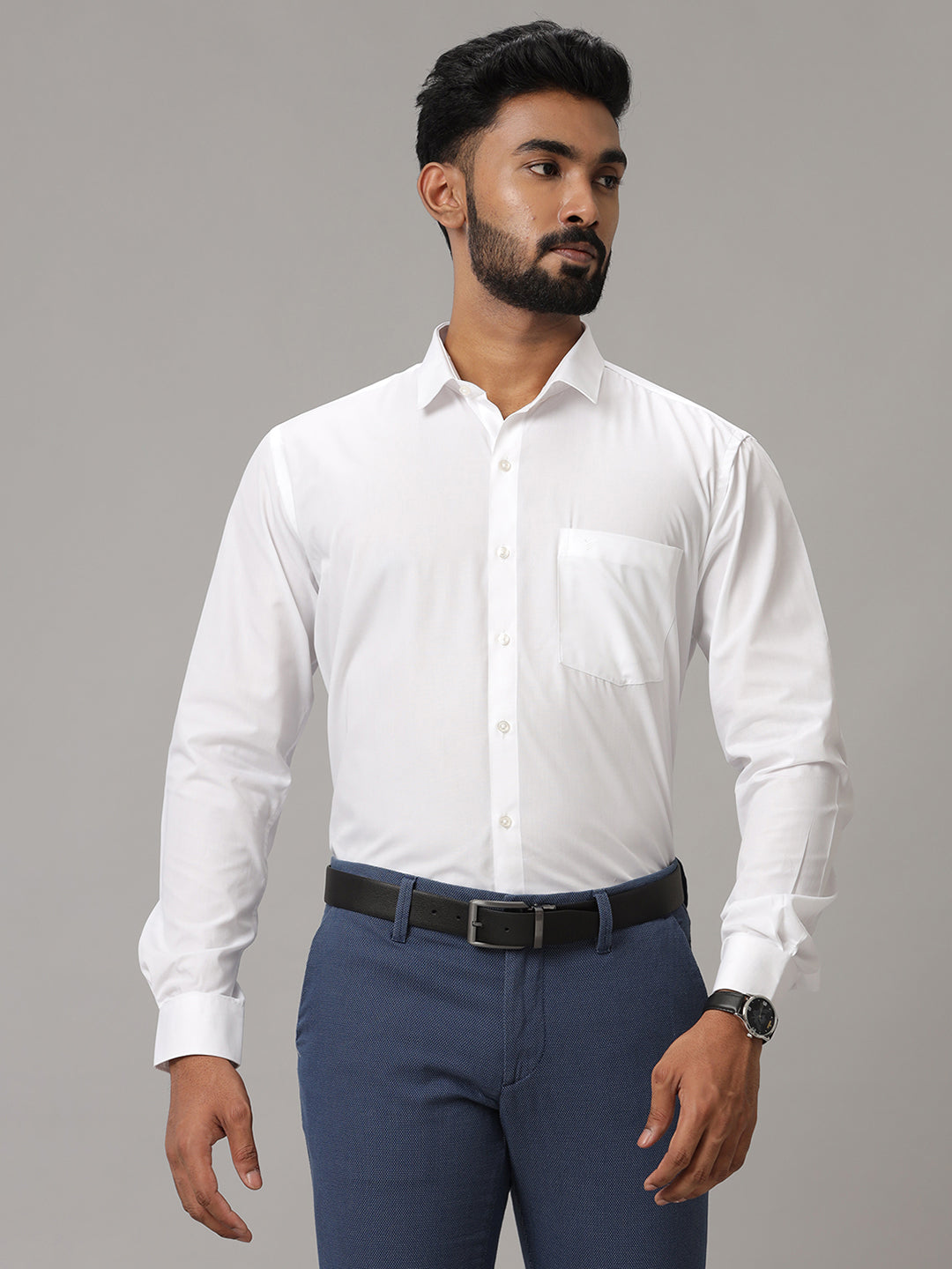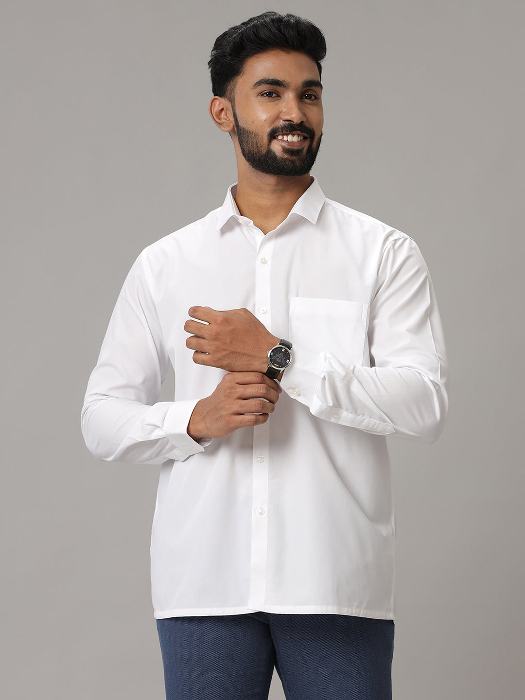 Men Cotton Rich Dual White Shirt