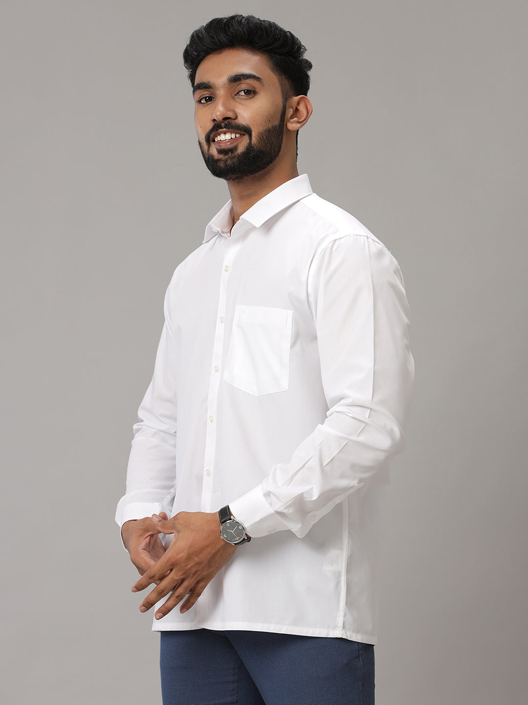 Men 100% Cotton Full Sleeves White Shirt Real White