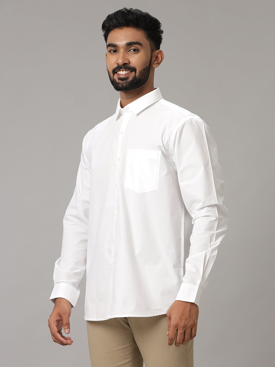 Men 100% Cotton Full Sleeves White Shirt Great White