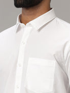 Men Cotton Blend Half Sleeves White Shirt Milky