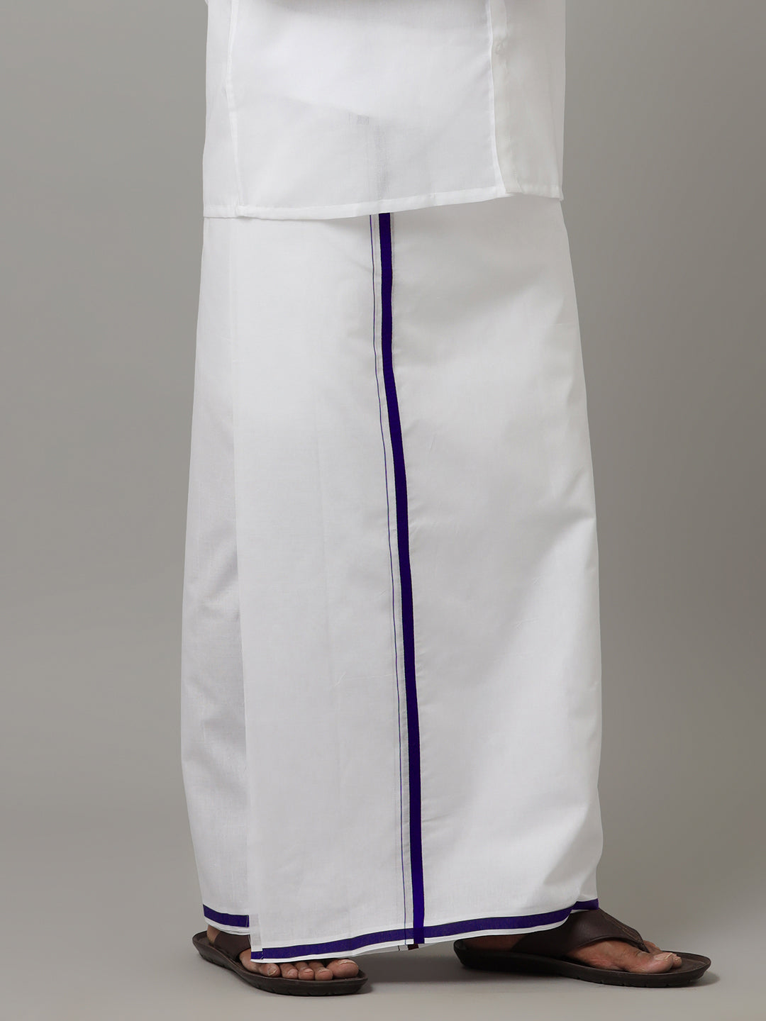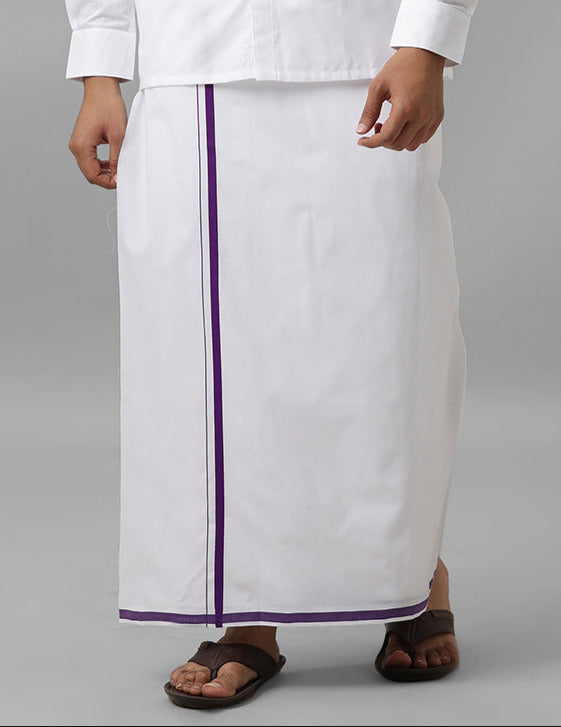 Men Cotton Blend Single Layer White Dhoti with Assorted Border Shivaa