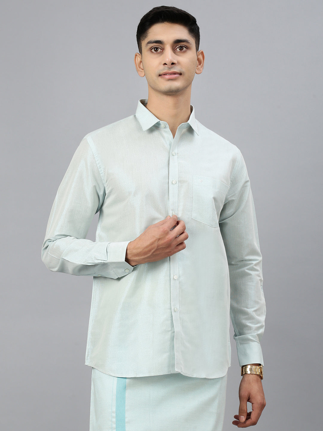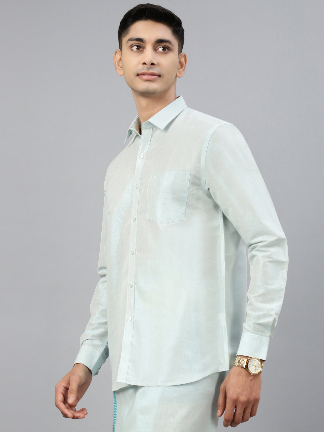Men Sean Blue Tissue Full Sleeves Shirt Sangeet