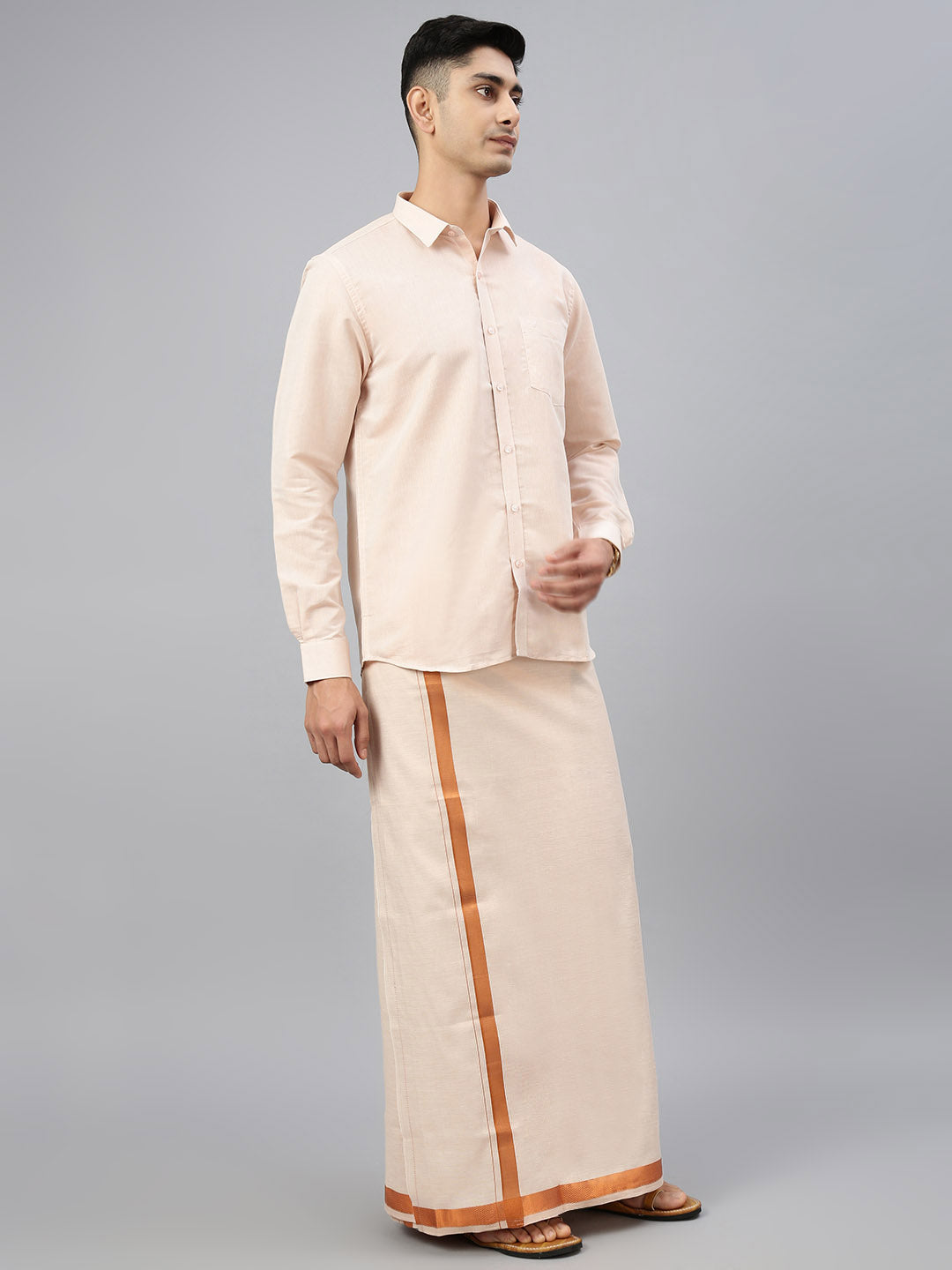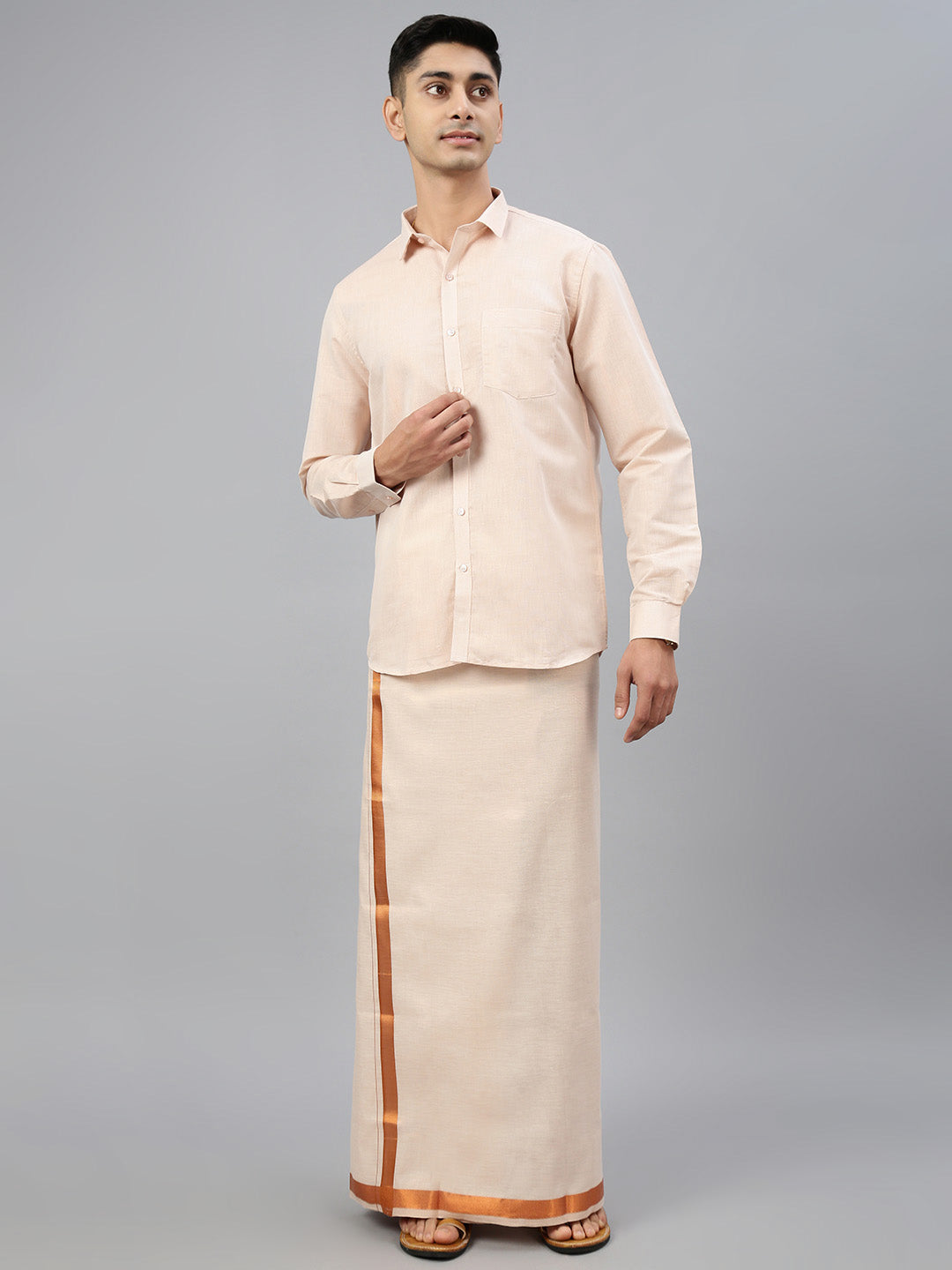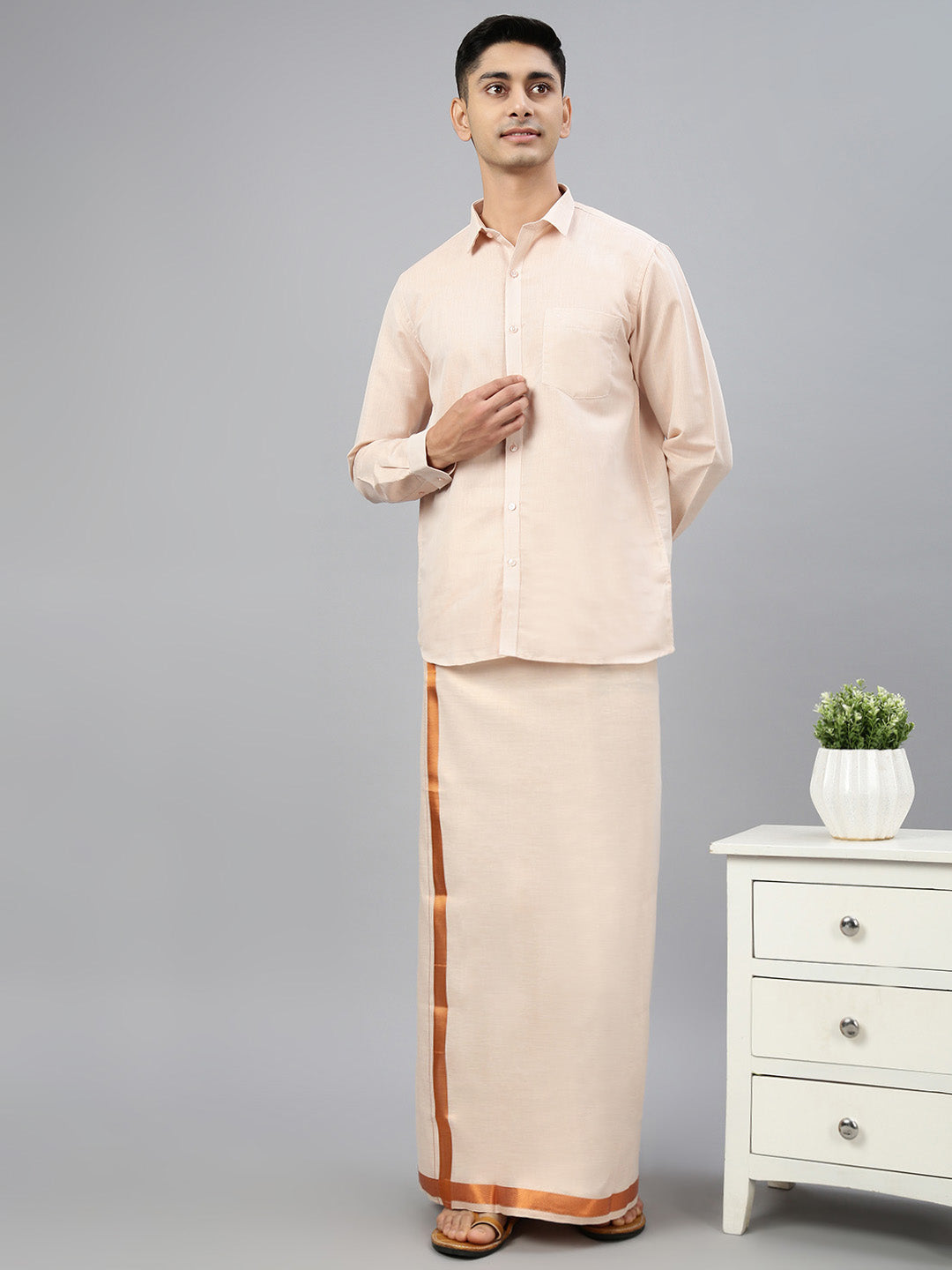 Men Tissue Full Sleeves Shirt and Dhoti Set Copper