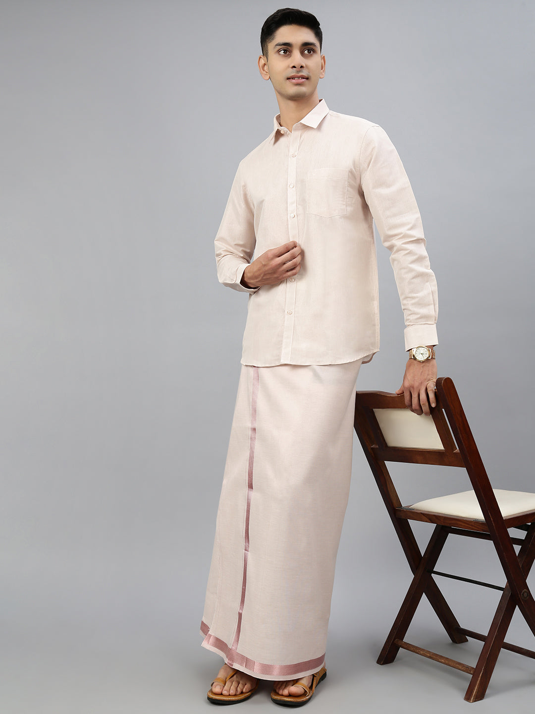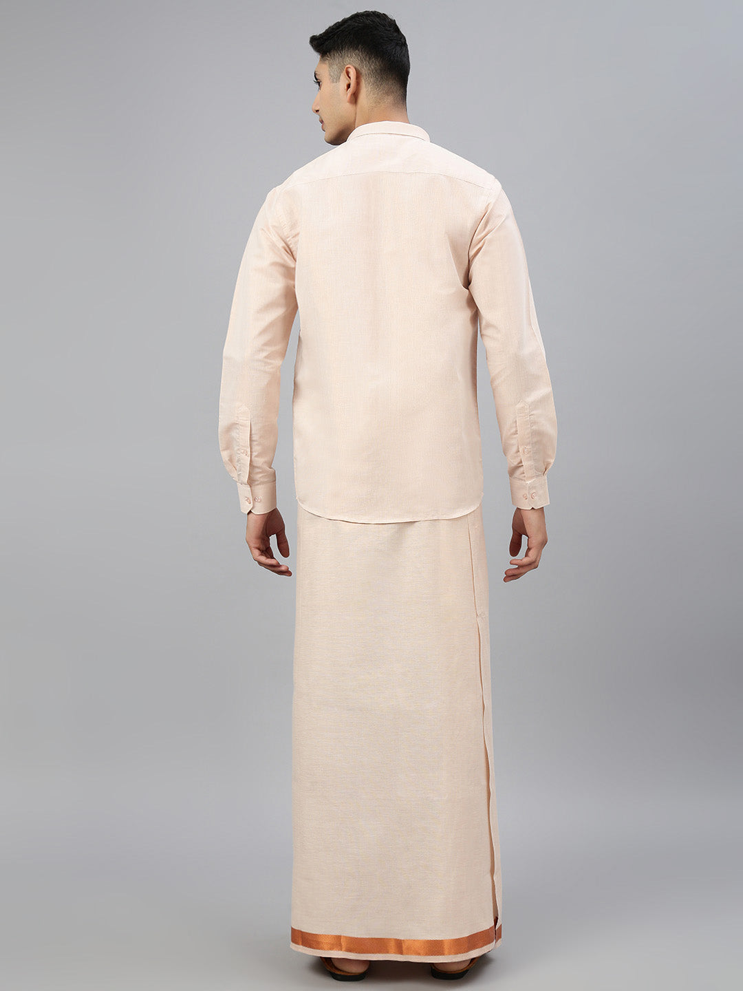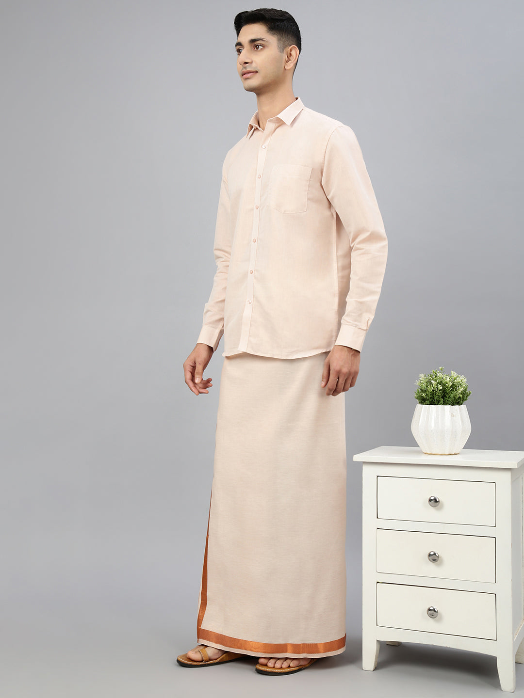 Men Tissue Full Sleeves Shirt and Dhoti Set Copper