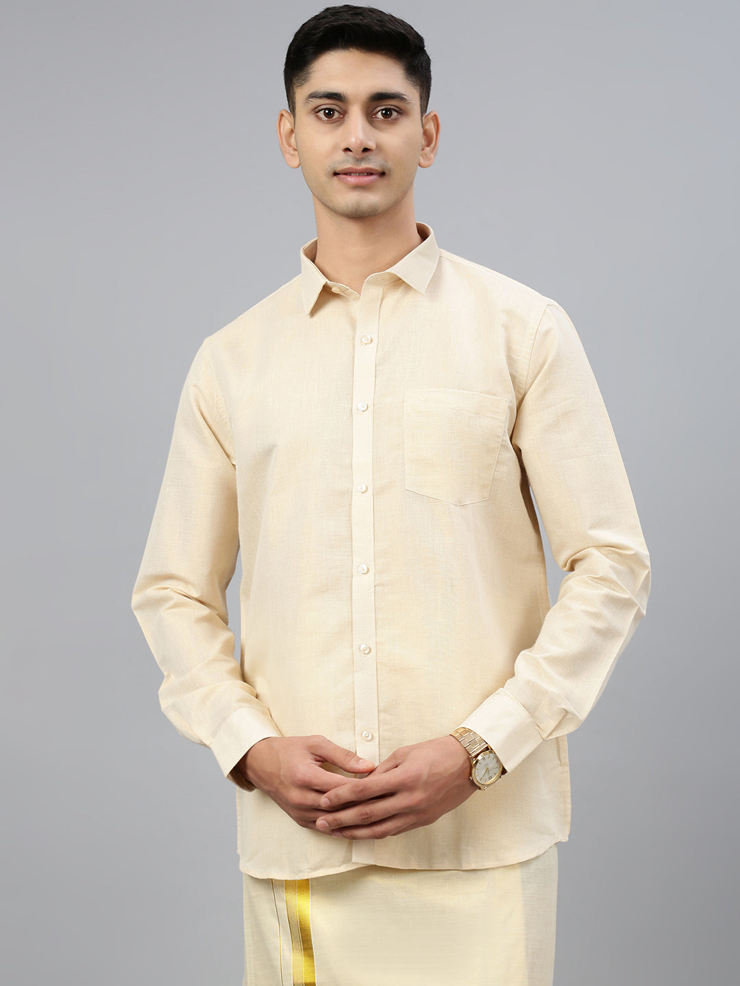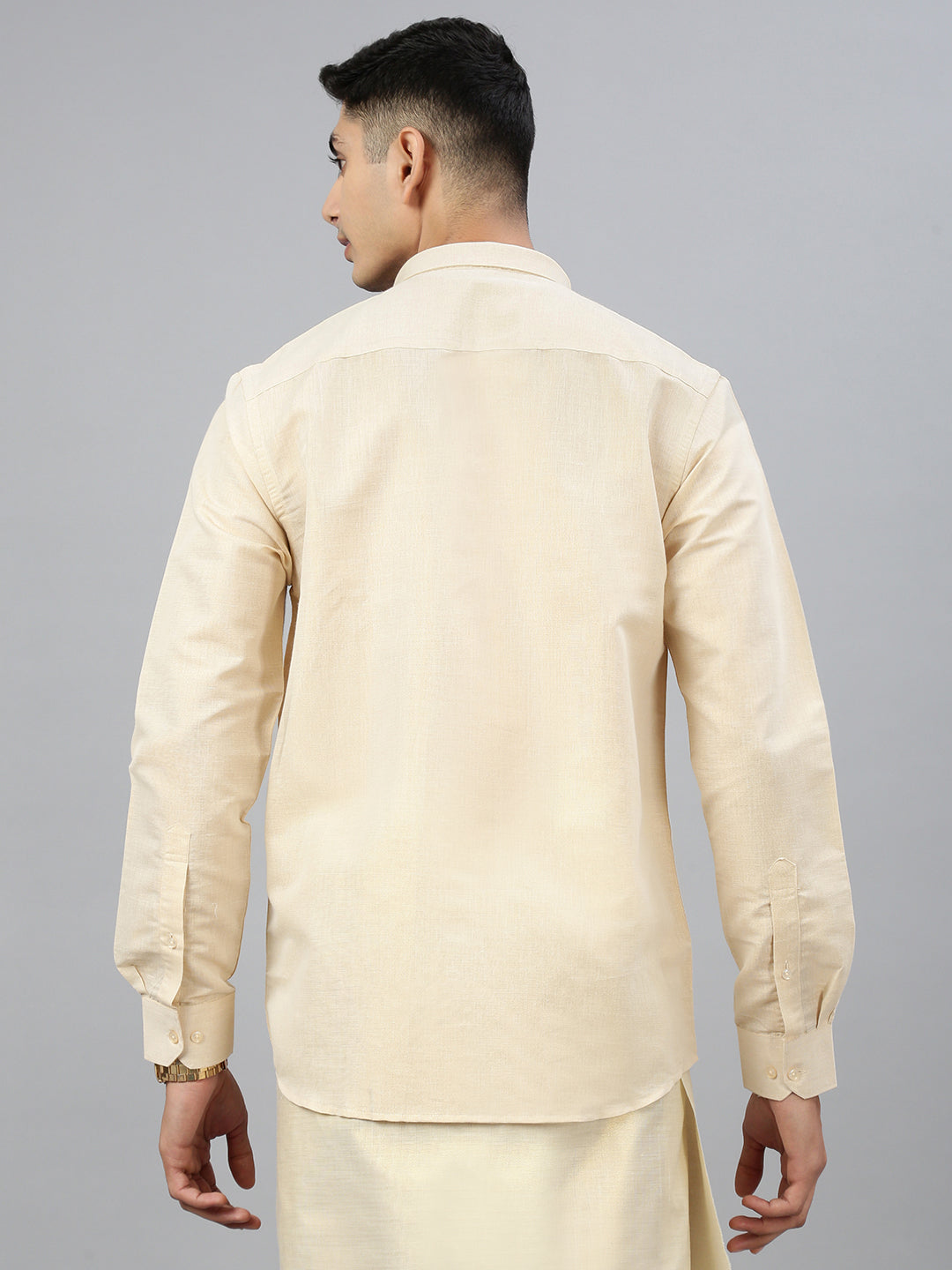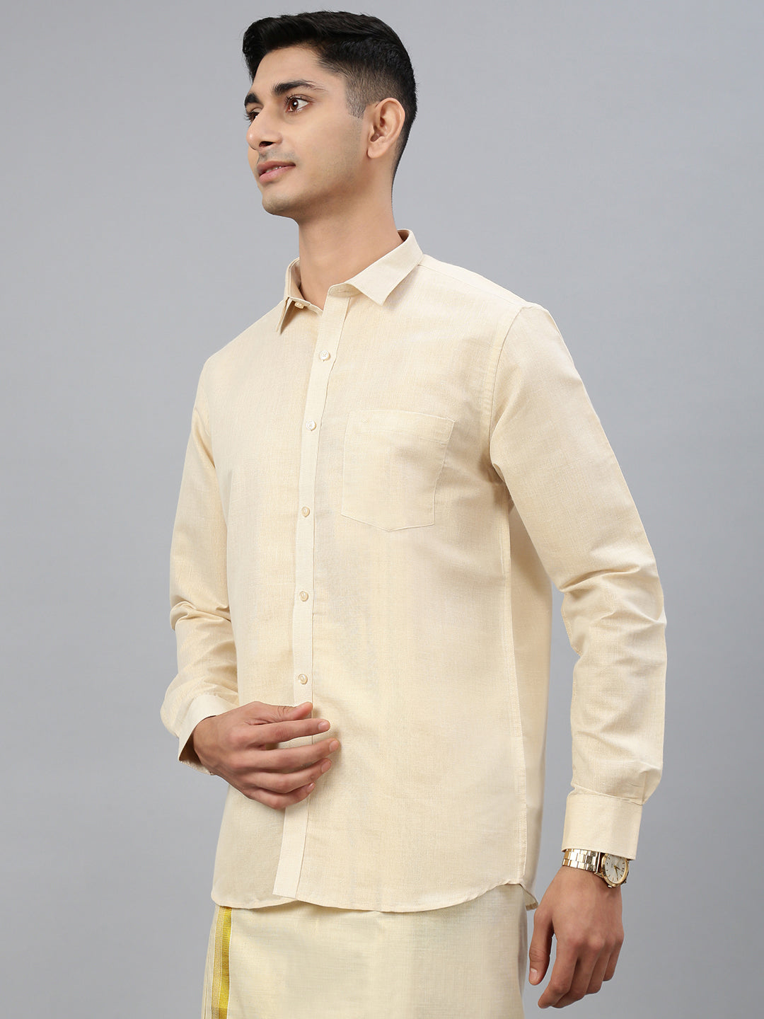 Men Gold Tissue Full Sleeves Shirt Sangeet