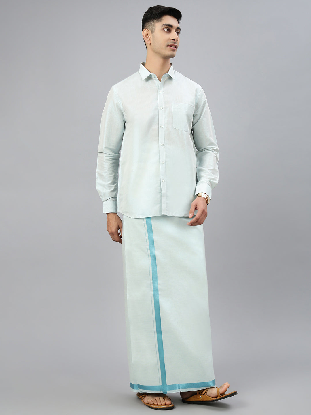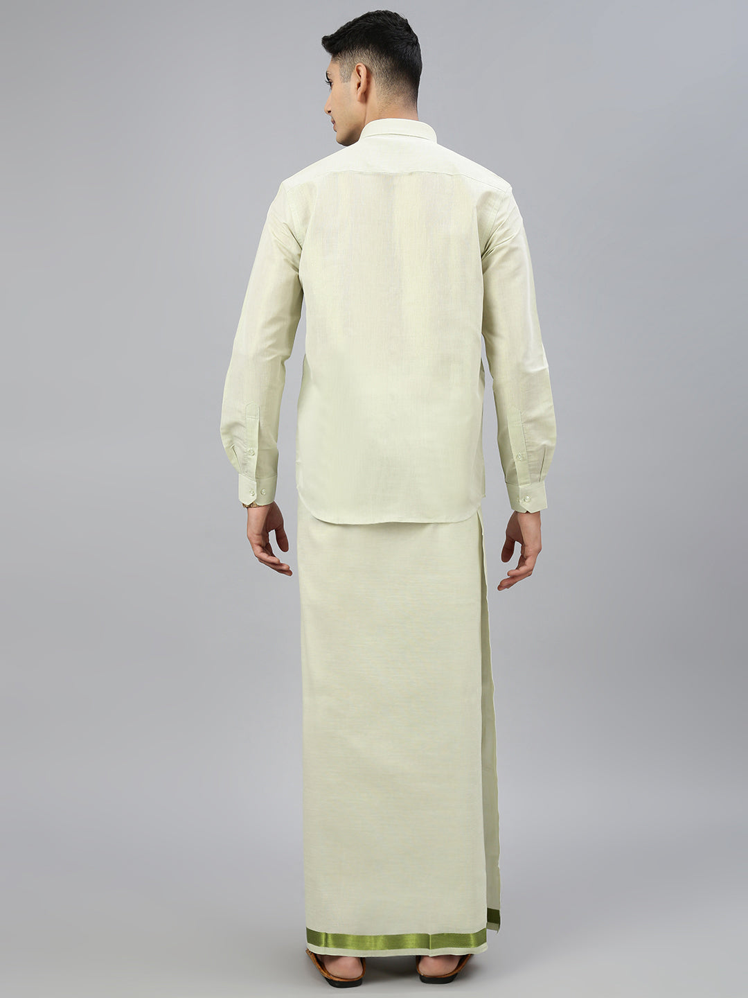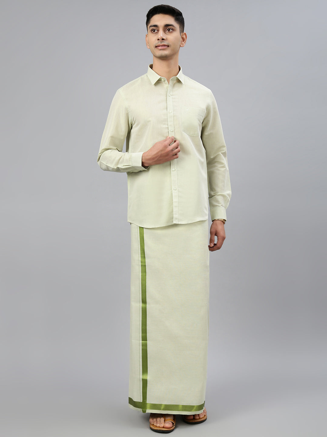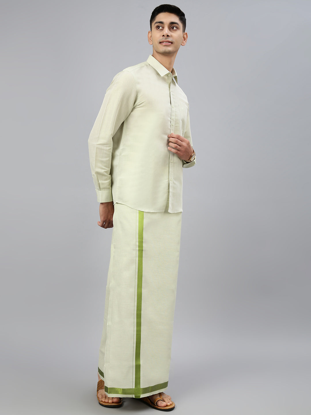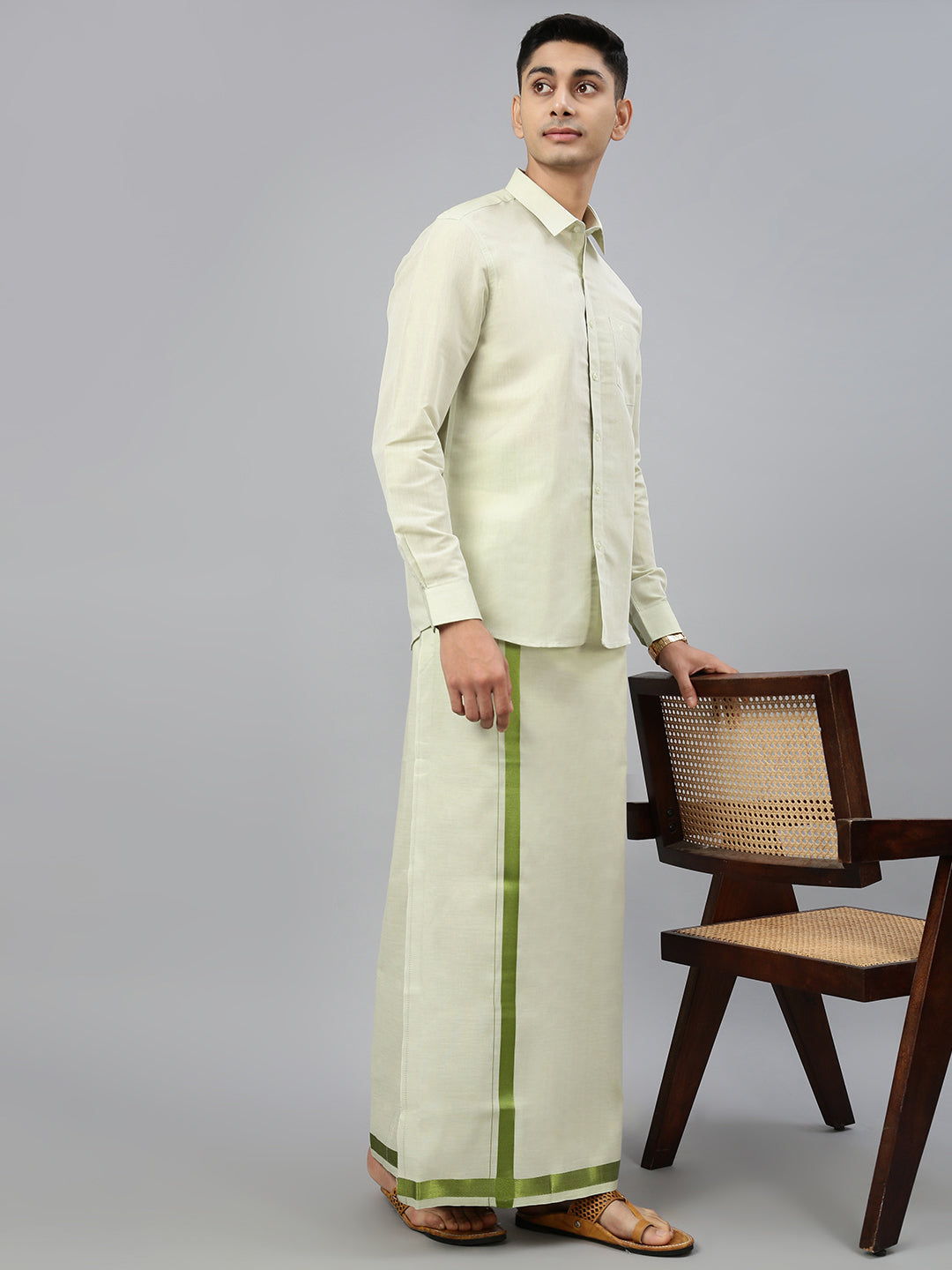 Men Tissue Full Sleeves Shirt and Dhoti Set Moss Green