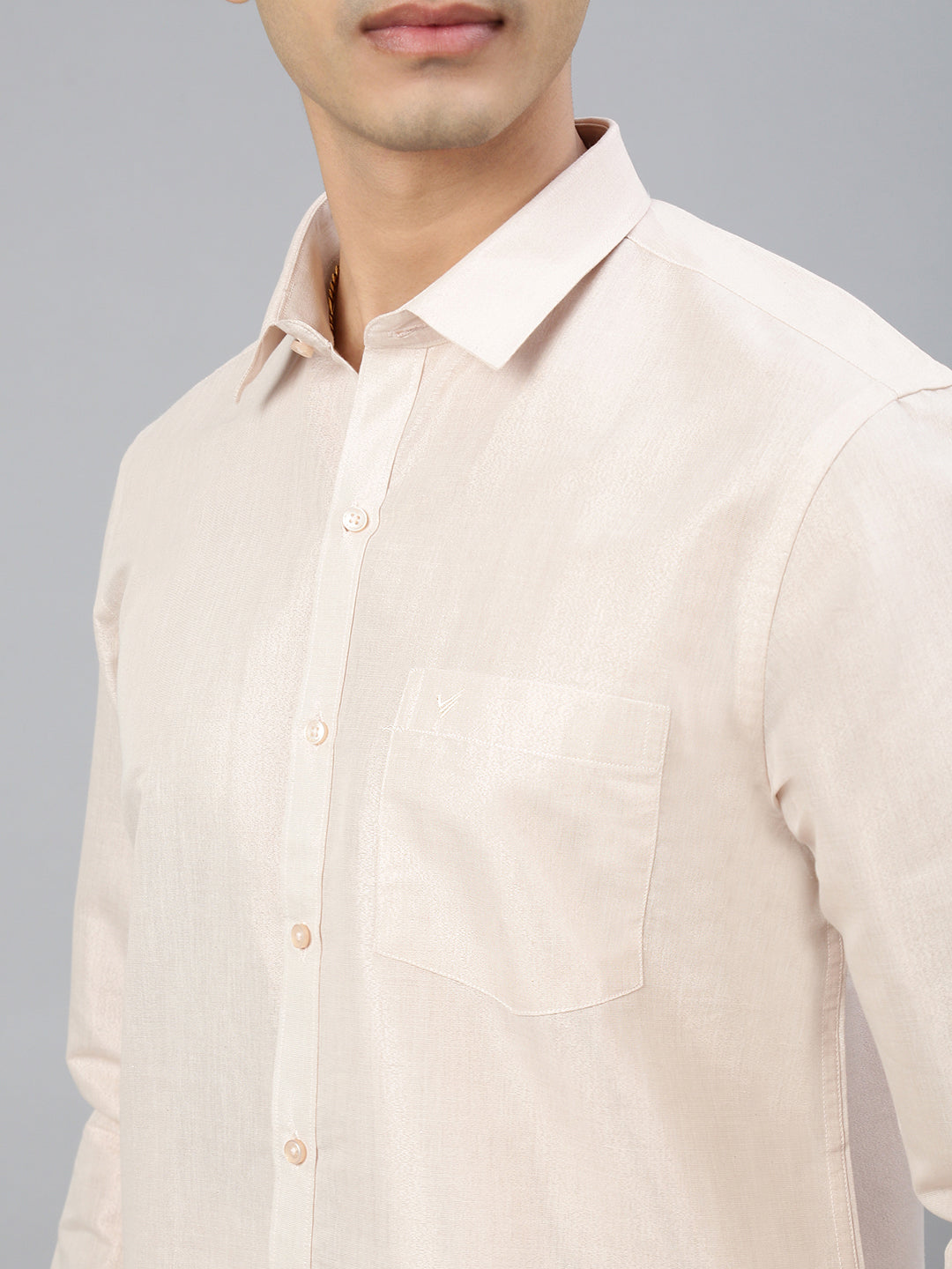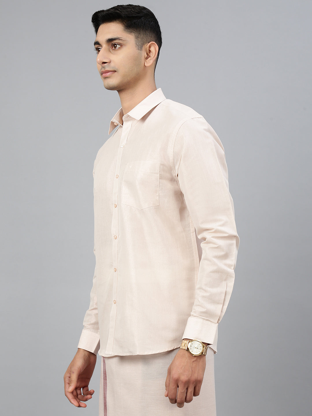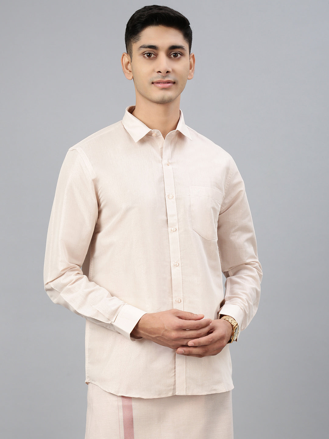 Men Rose Gold Tissue Full Sleeves Shirt Sangeet