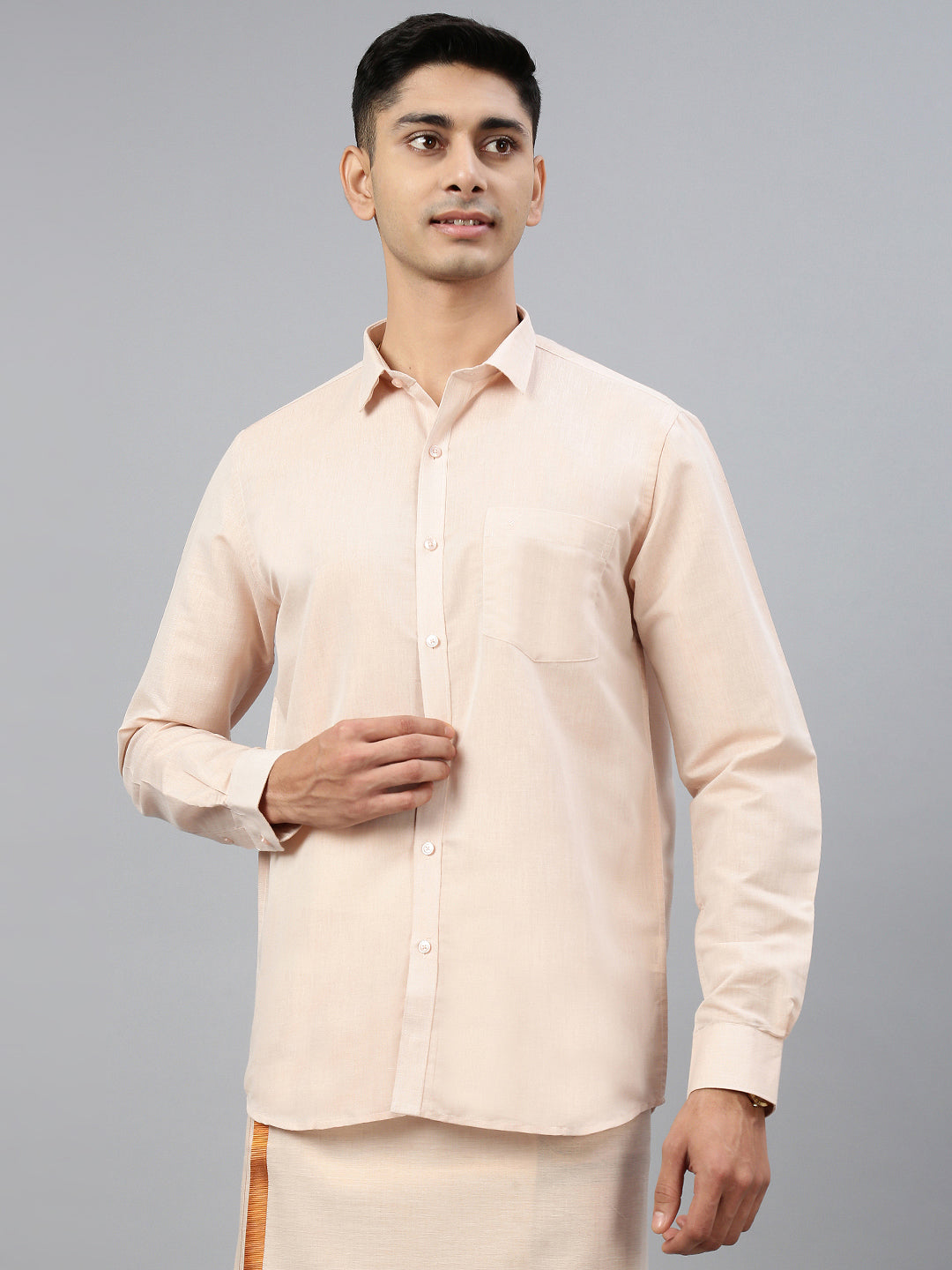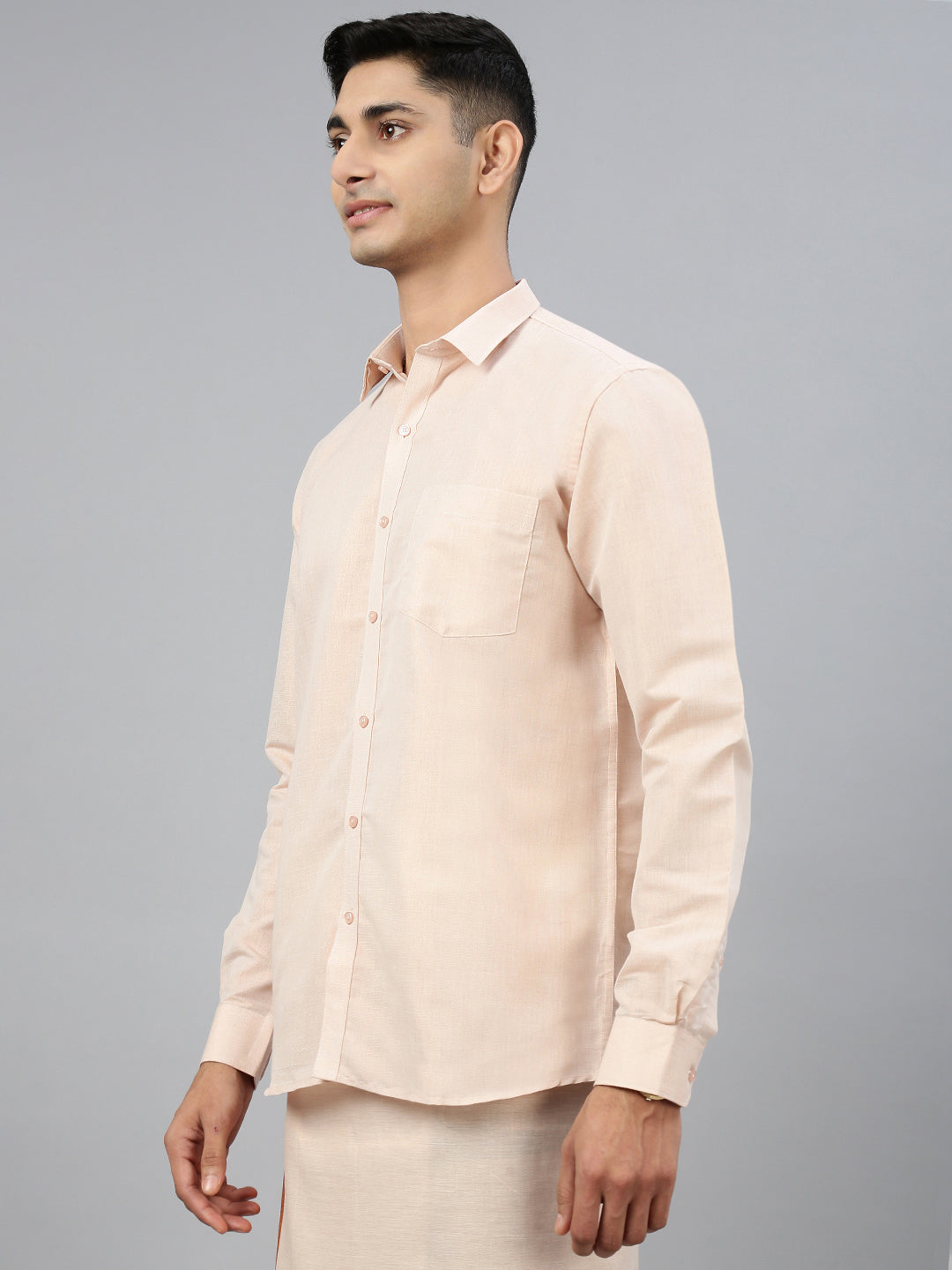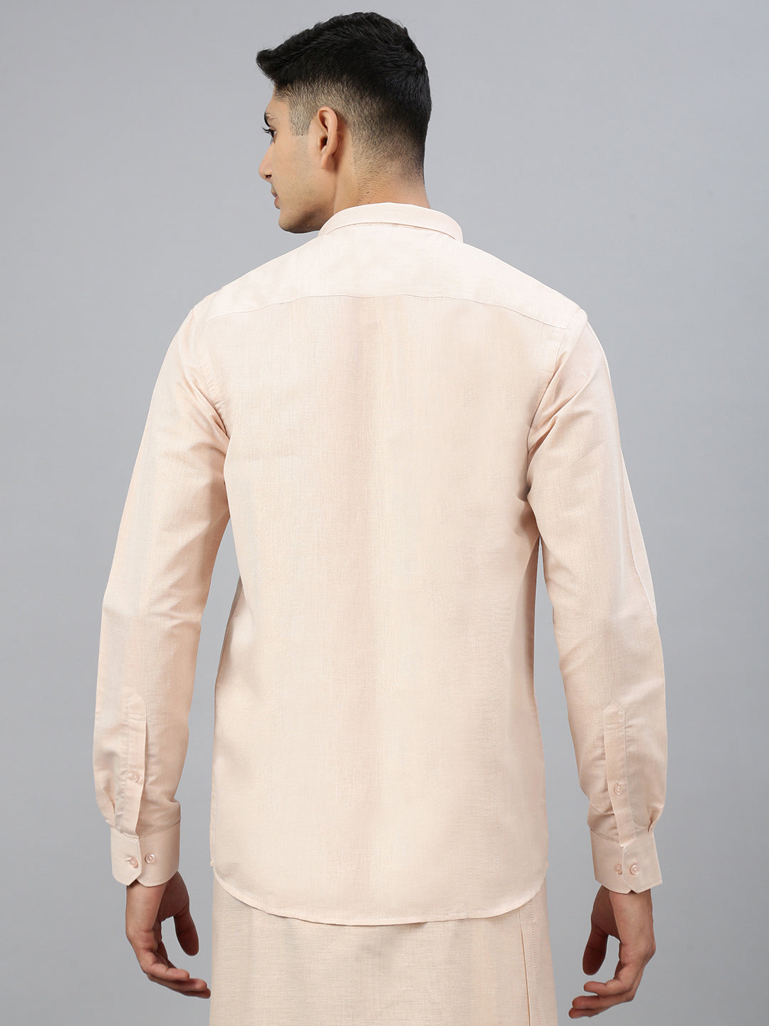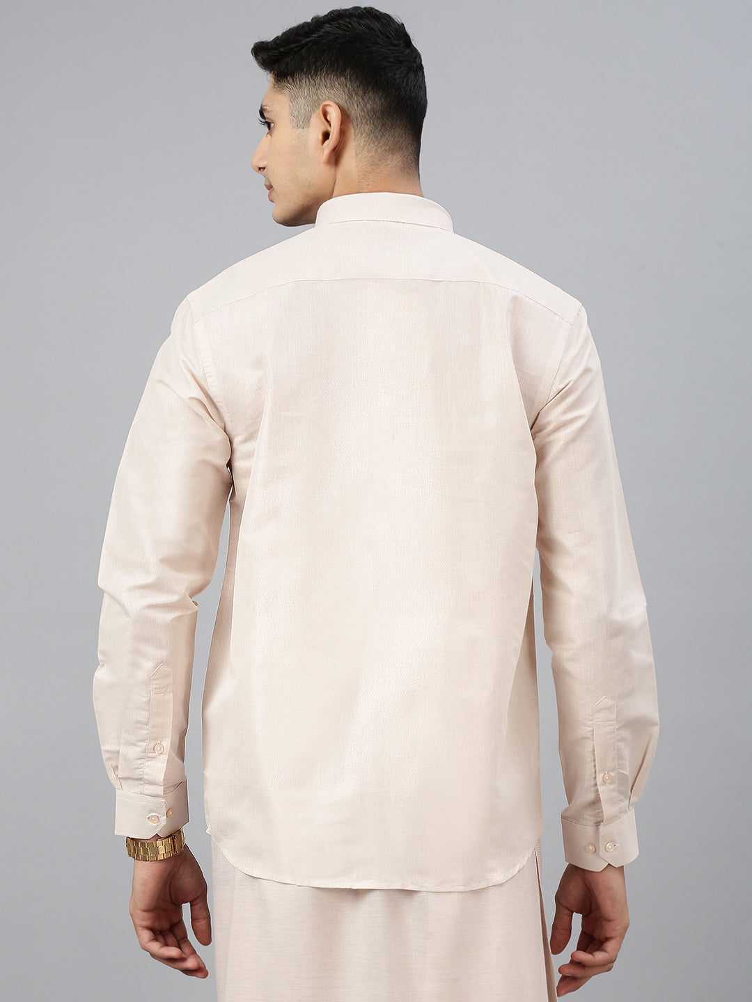 Men Rose Gold Tissue Full Sleeves Shirt Sangeet