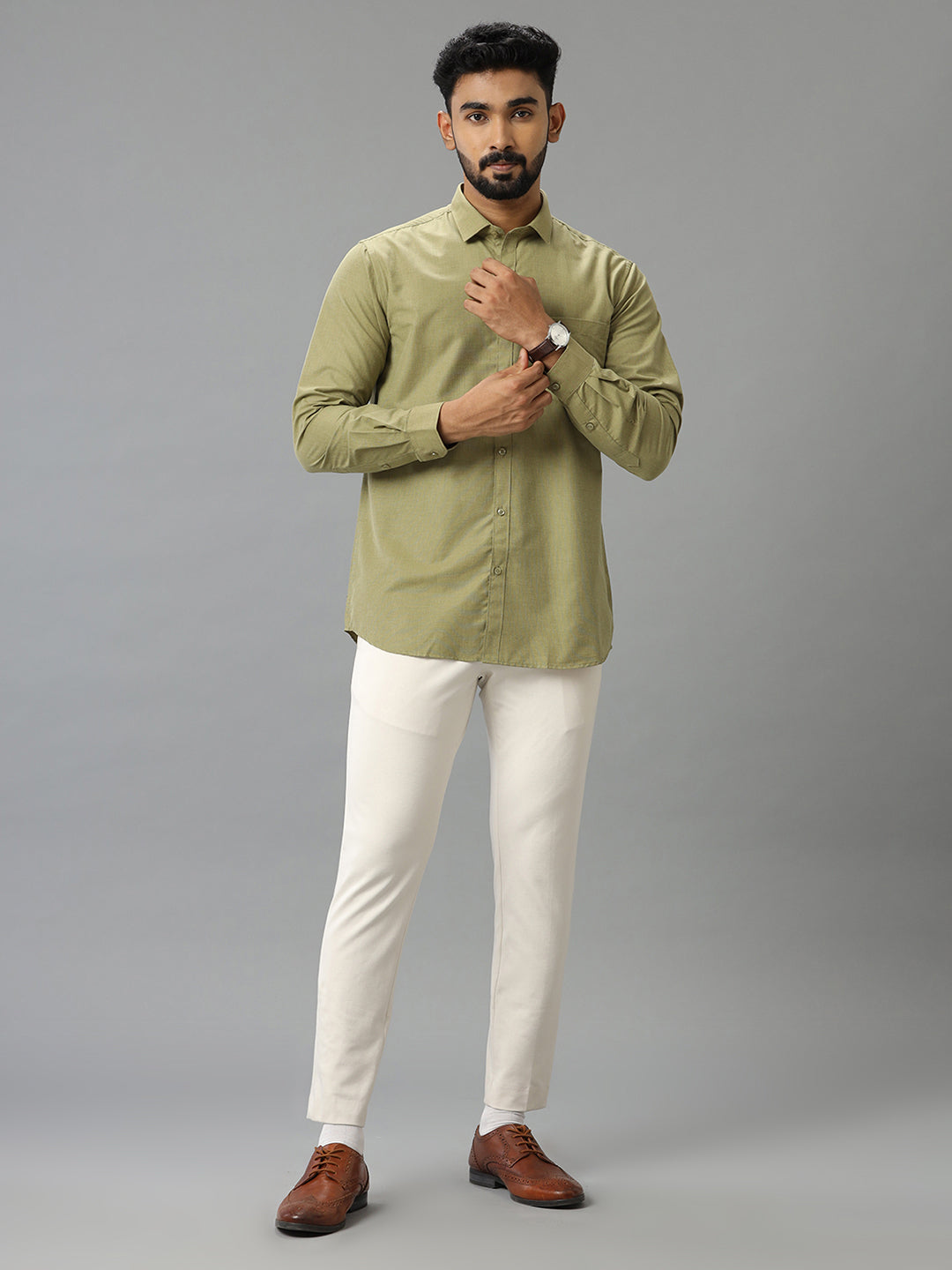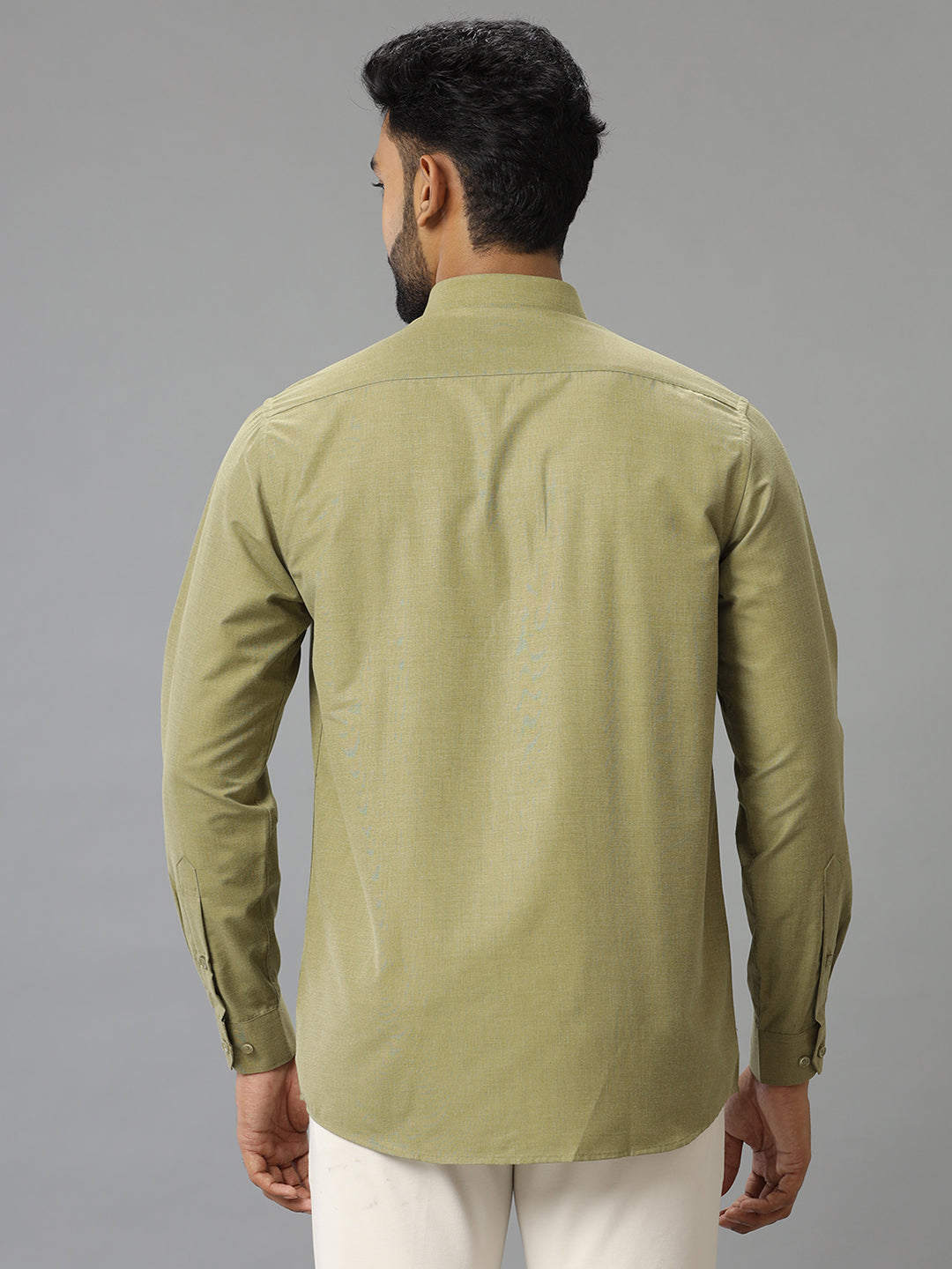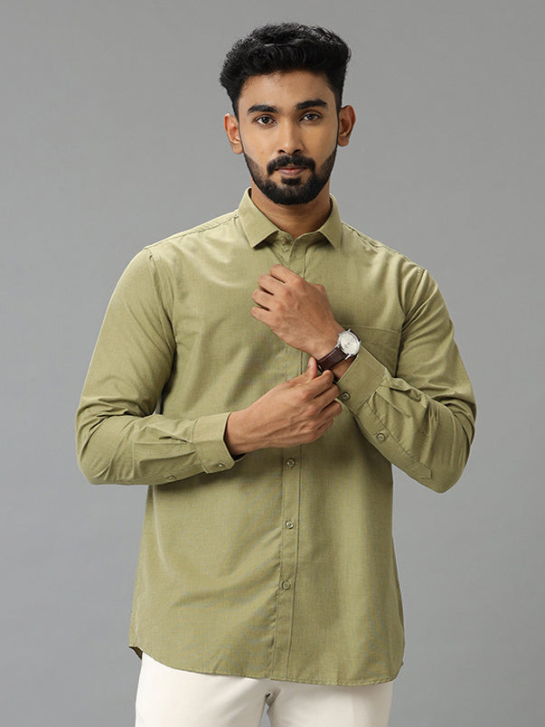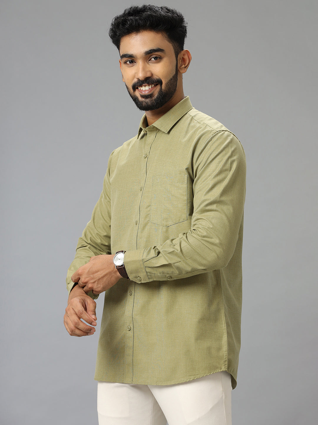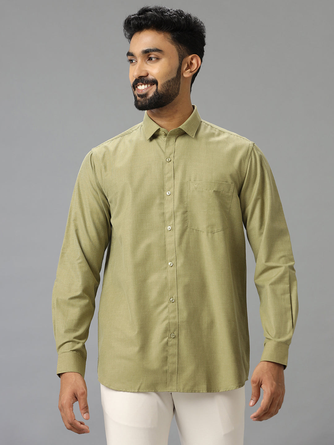 Mens Cotton Blend Full Sleeves Shirt Olive Green Dignity VF36