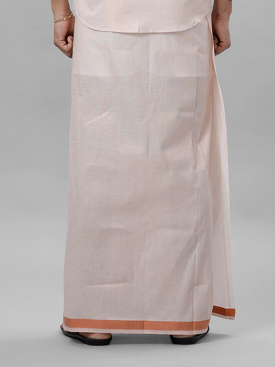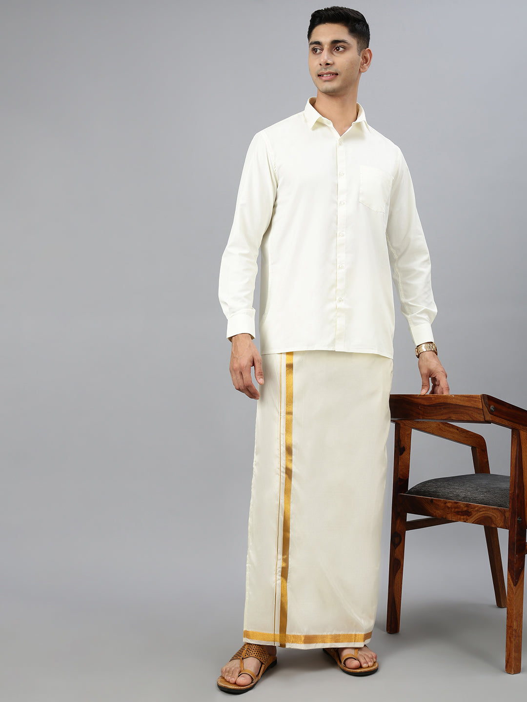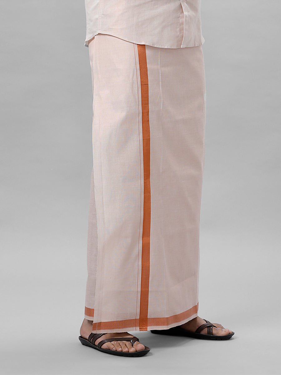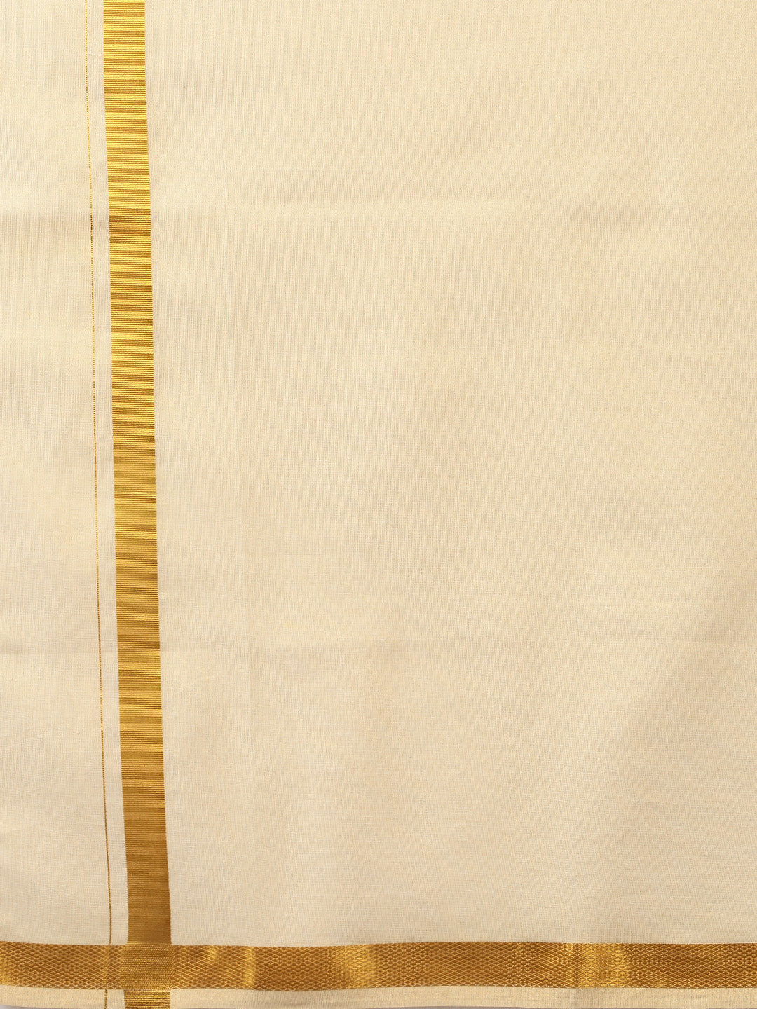 Men Readymade Single Layer Cream Dhoti with Gold Jari Border