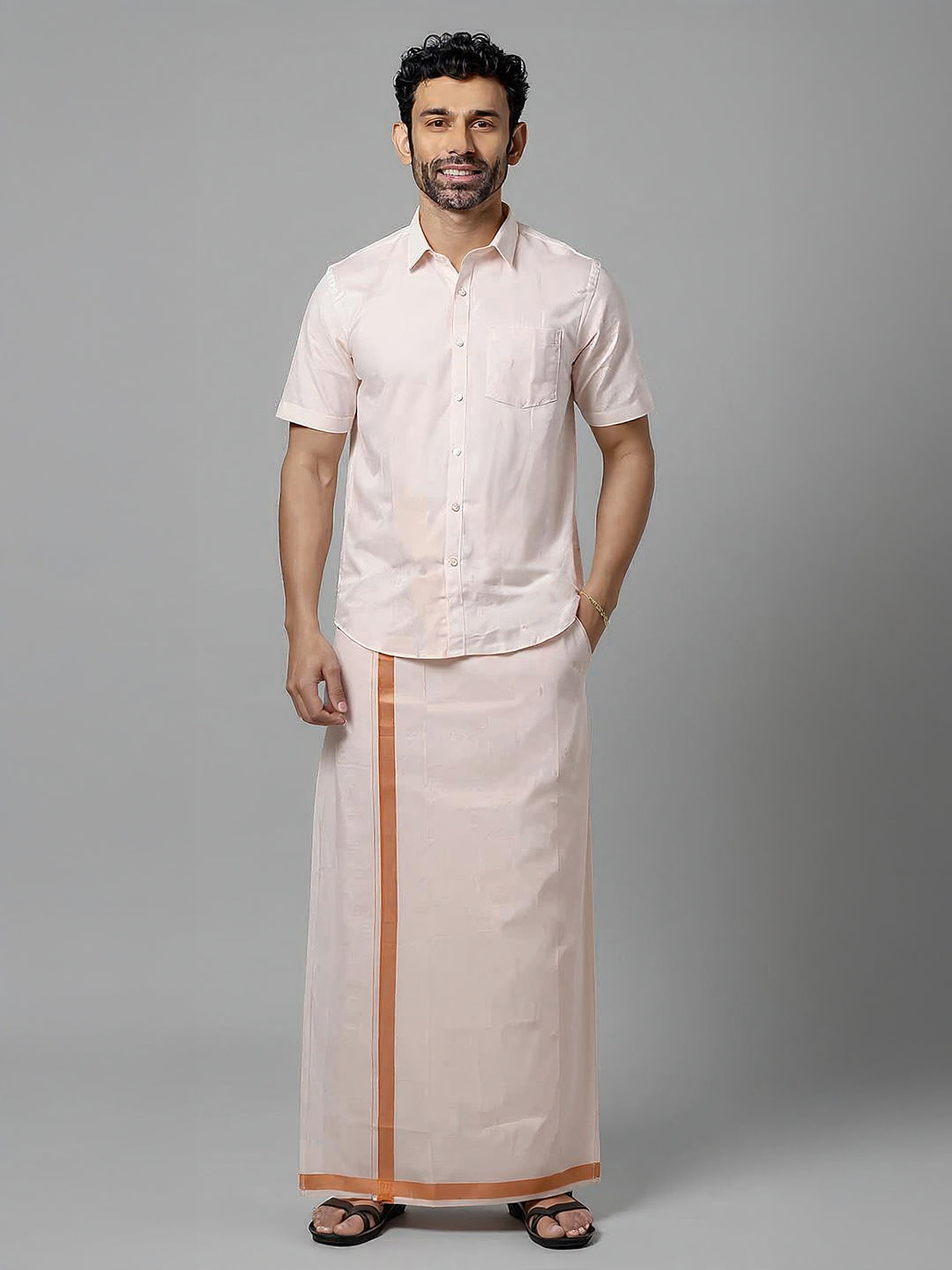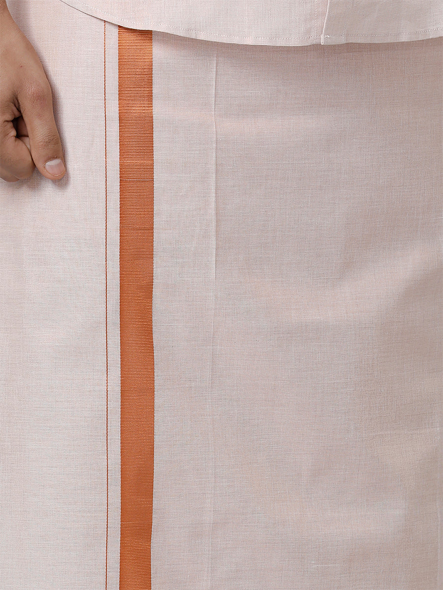Men Tissue Readymade Single Layer Copper Dhoti with Jari Border