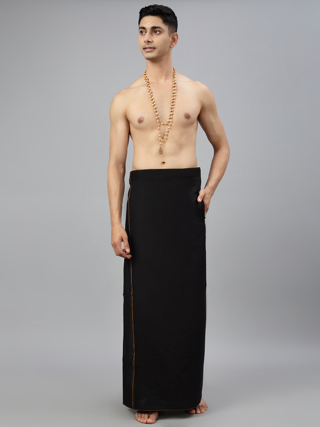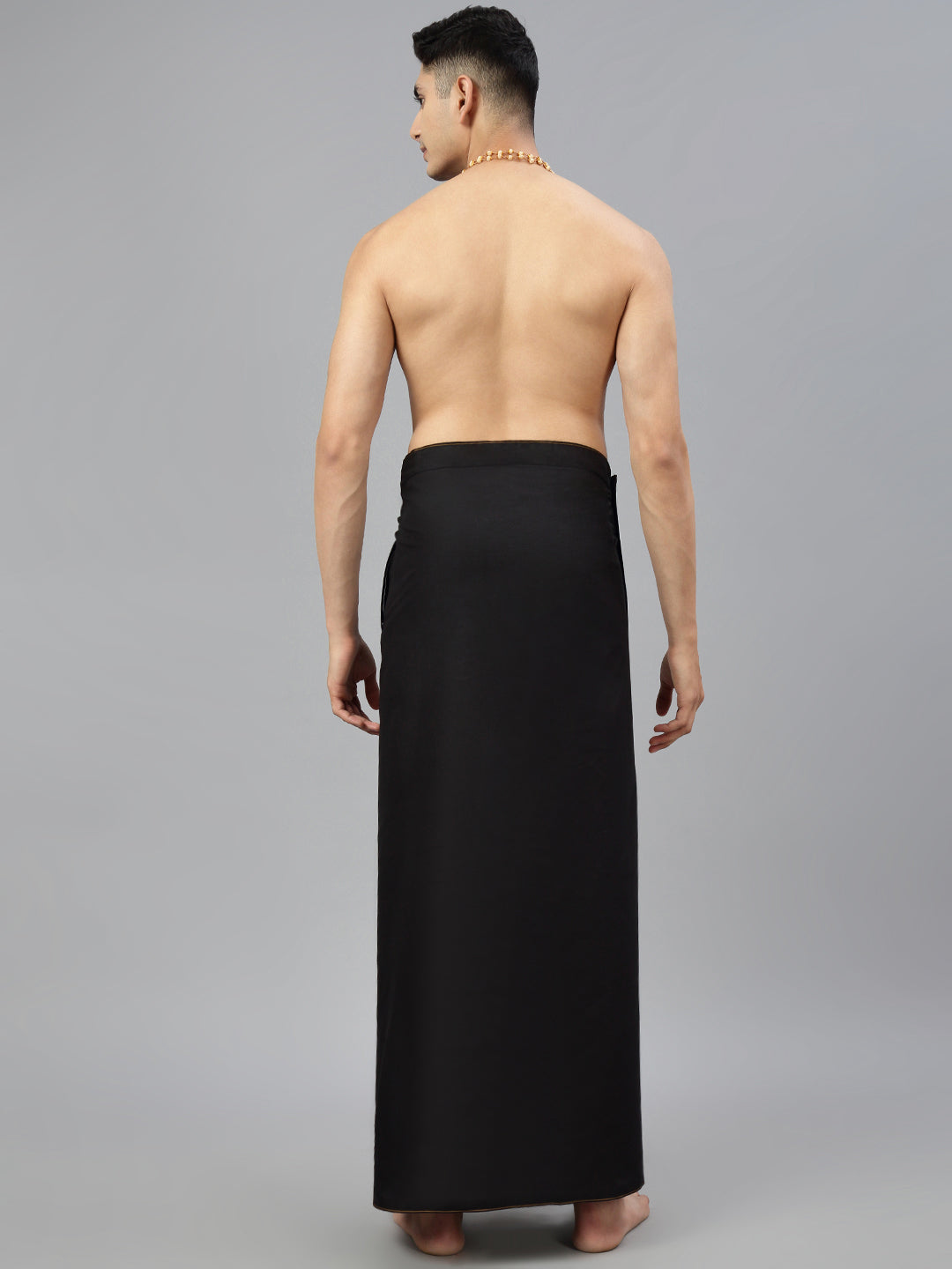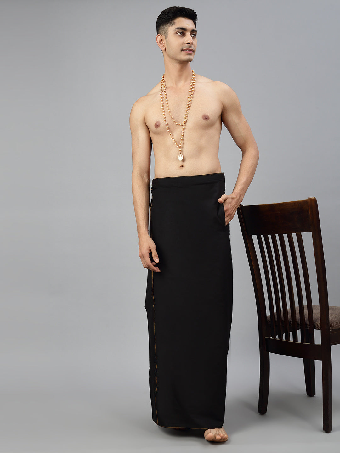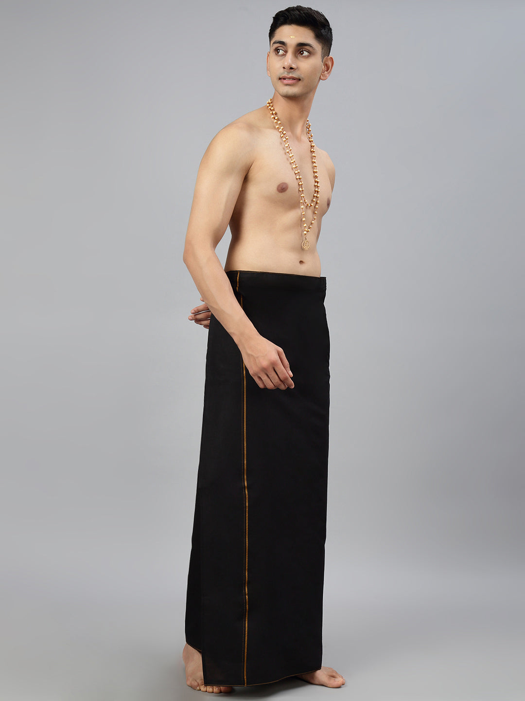Men Readymade Single Layer Black Dhoti with Assorted Small Border