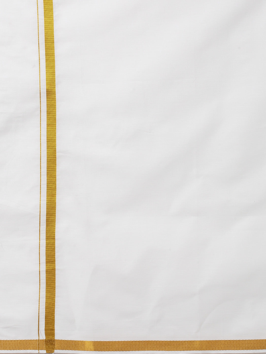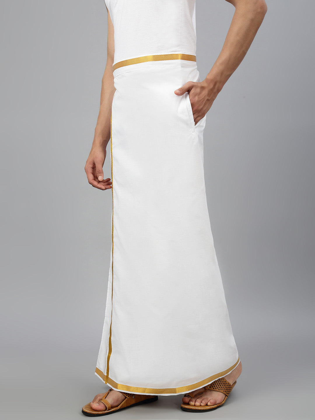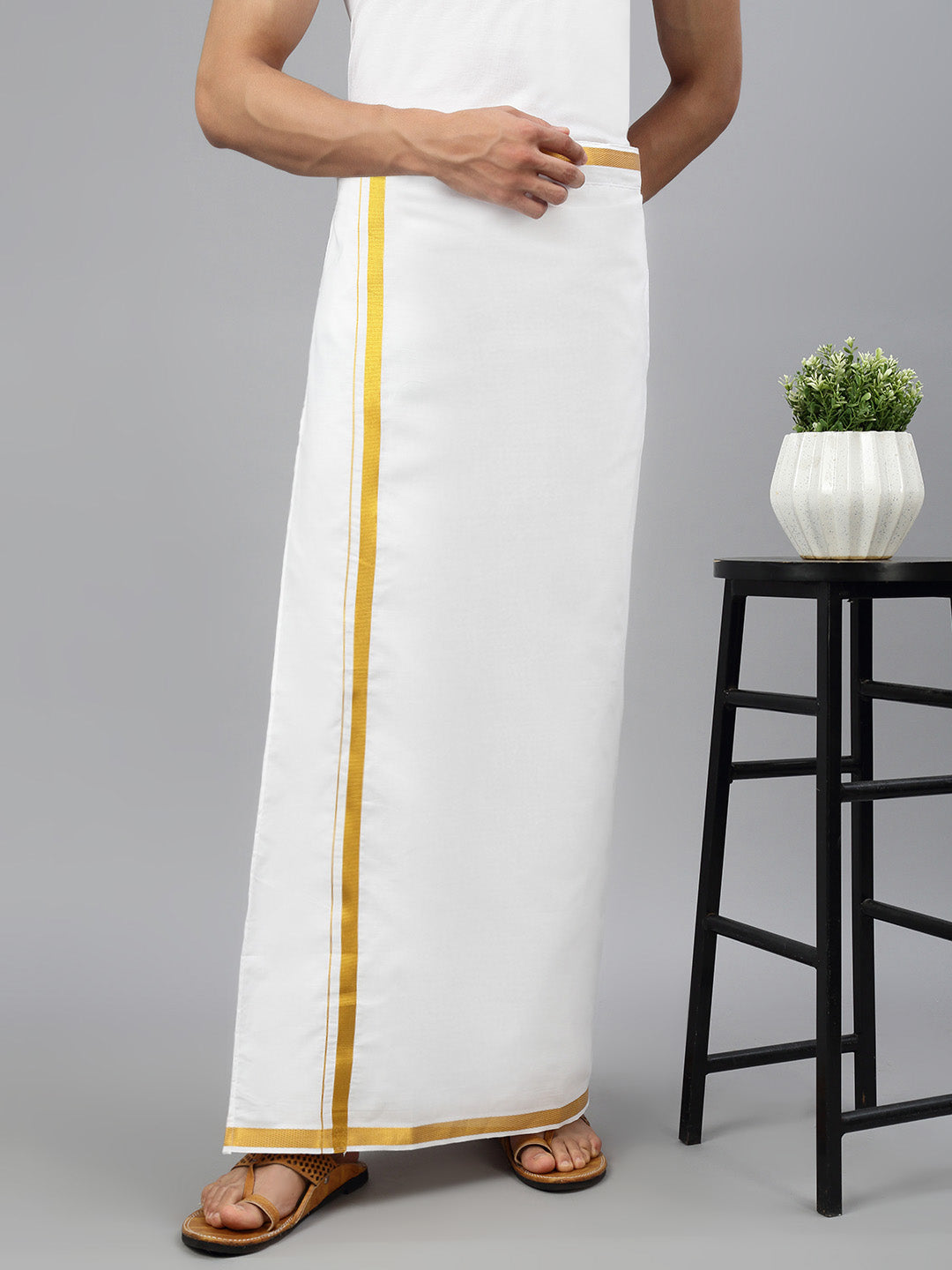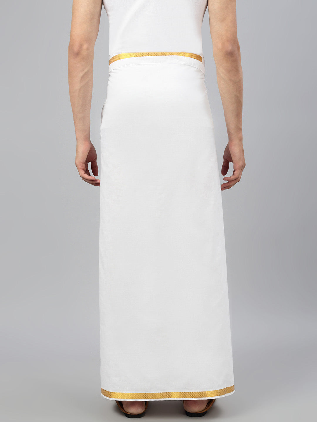 Men Readymade Single Layer White Dhoti with Gold Jari Border