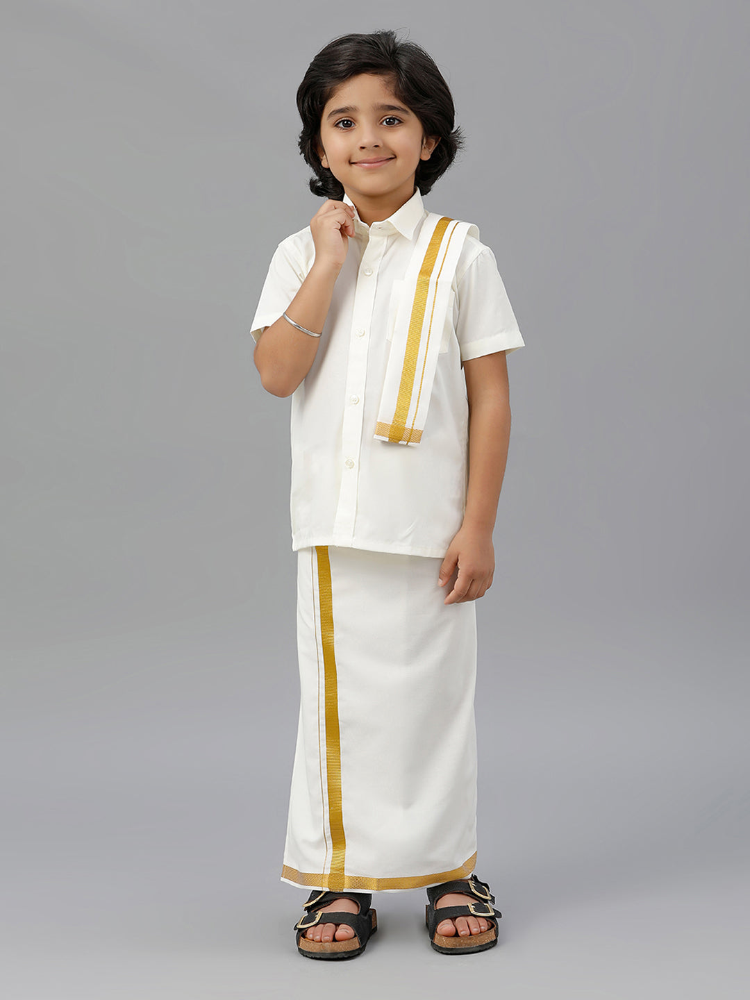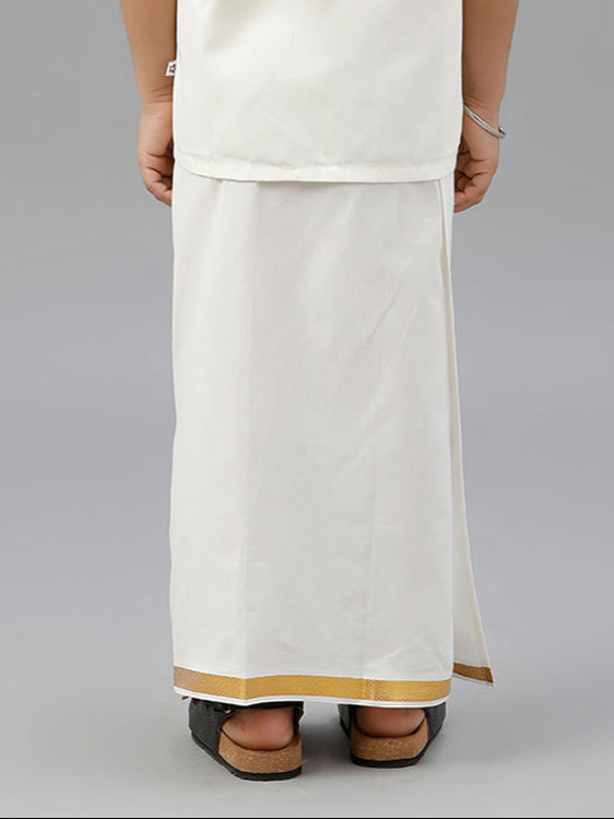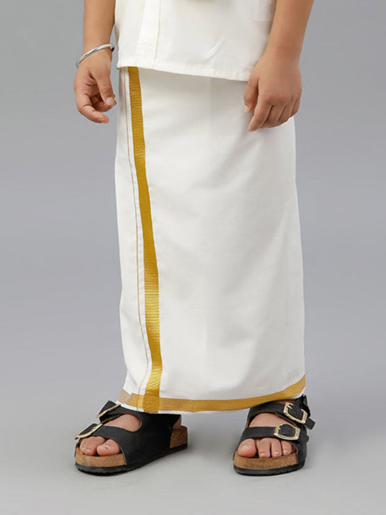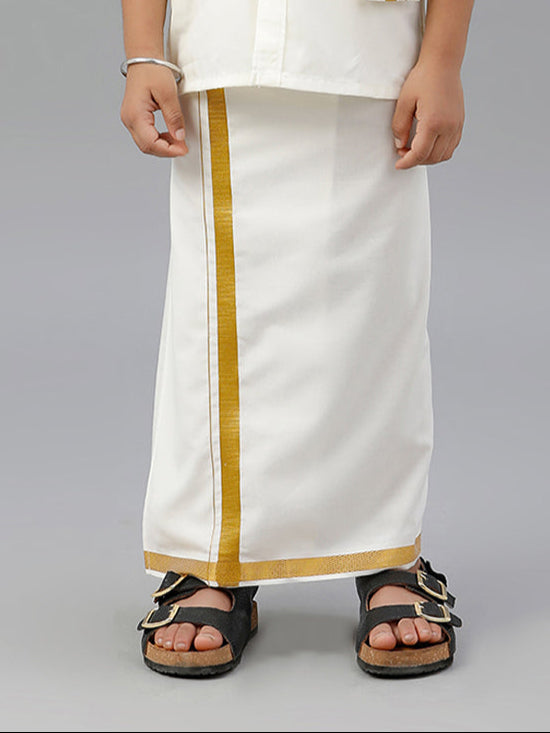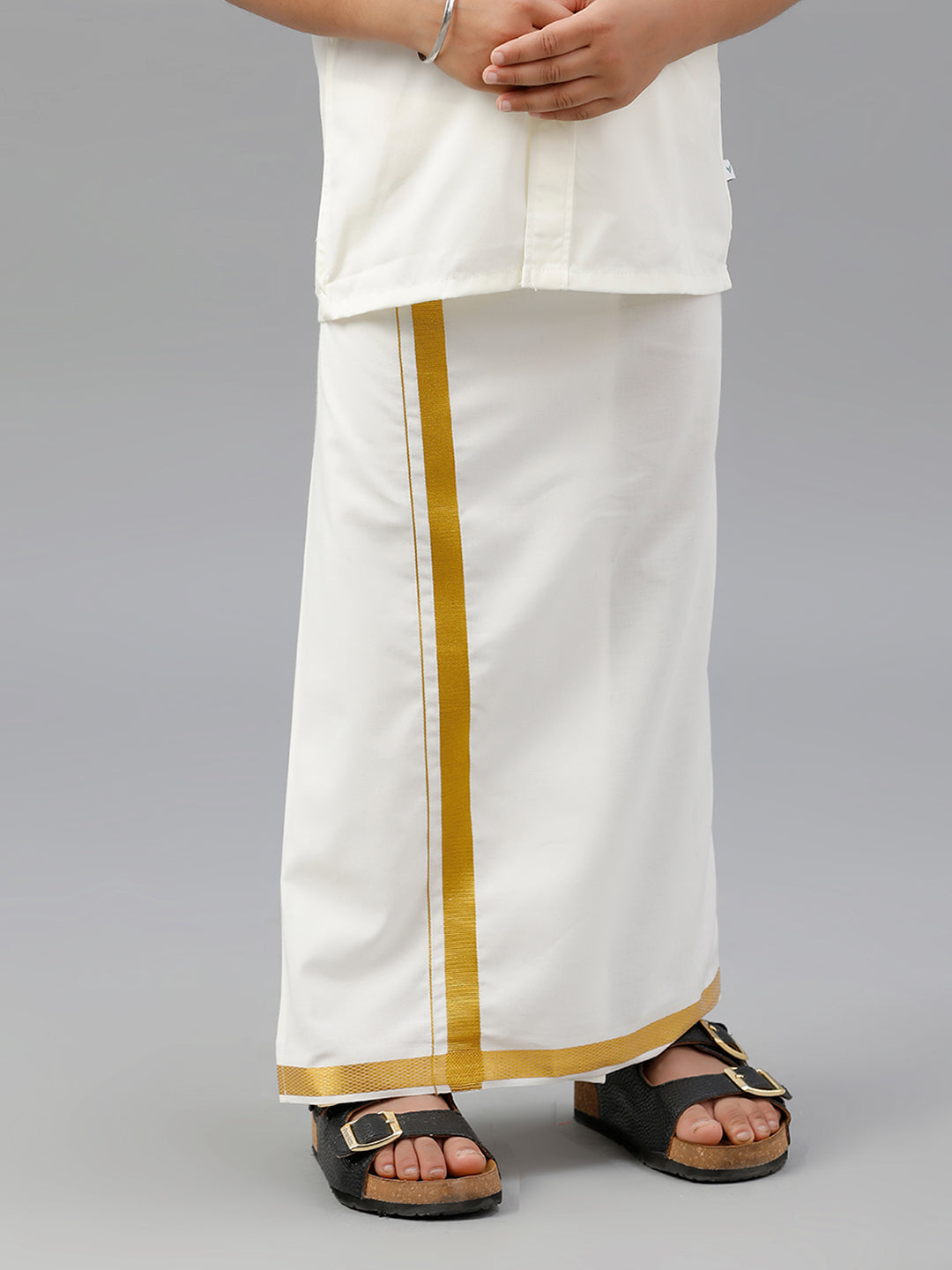 Cotton Blend Boys Readymade Cream Dhoti with Gold Jari Border