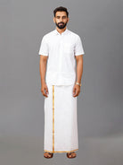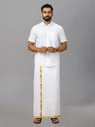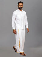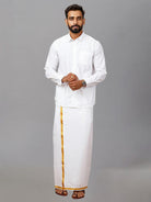 Men Cotton White Shirt with Gold Jari Border Dhoti Combo