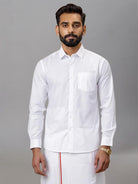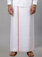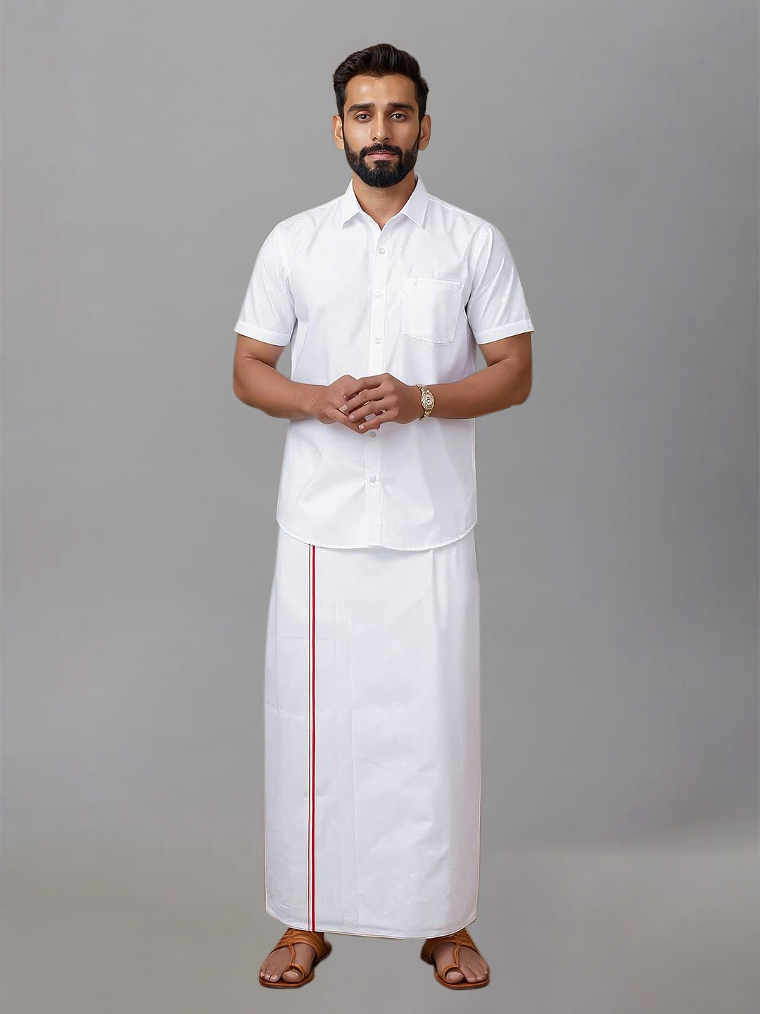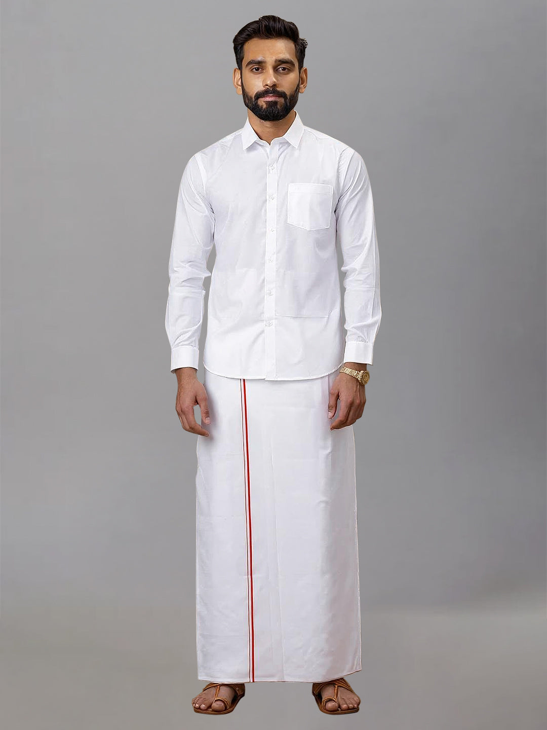 Men Cotton White Shirt with Small Border Dhoti Combo