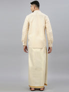 Men Tissue Full Sleeves Shirt and Dhoti Set Gold