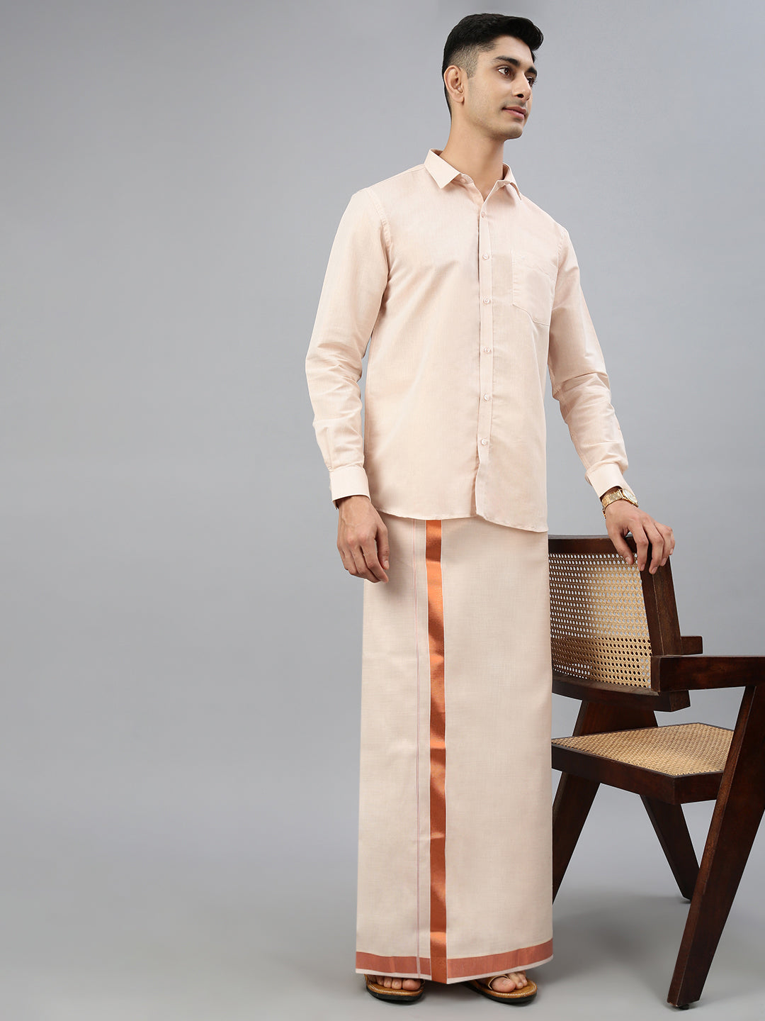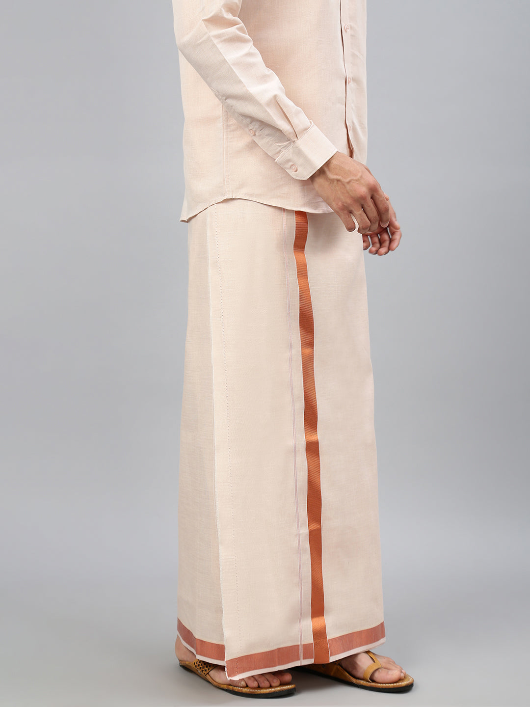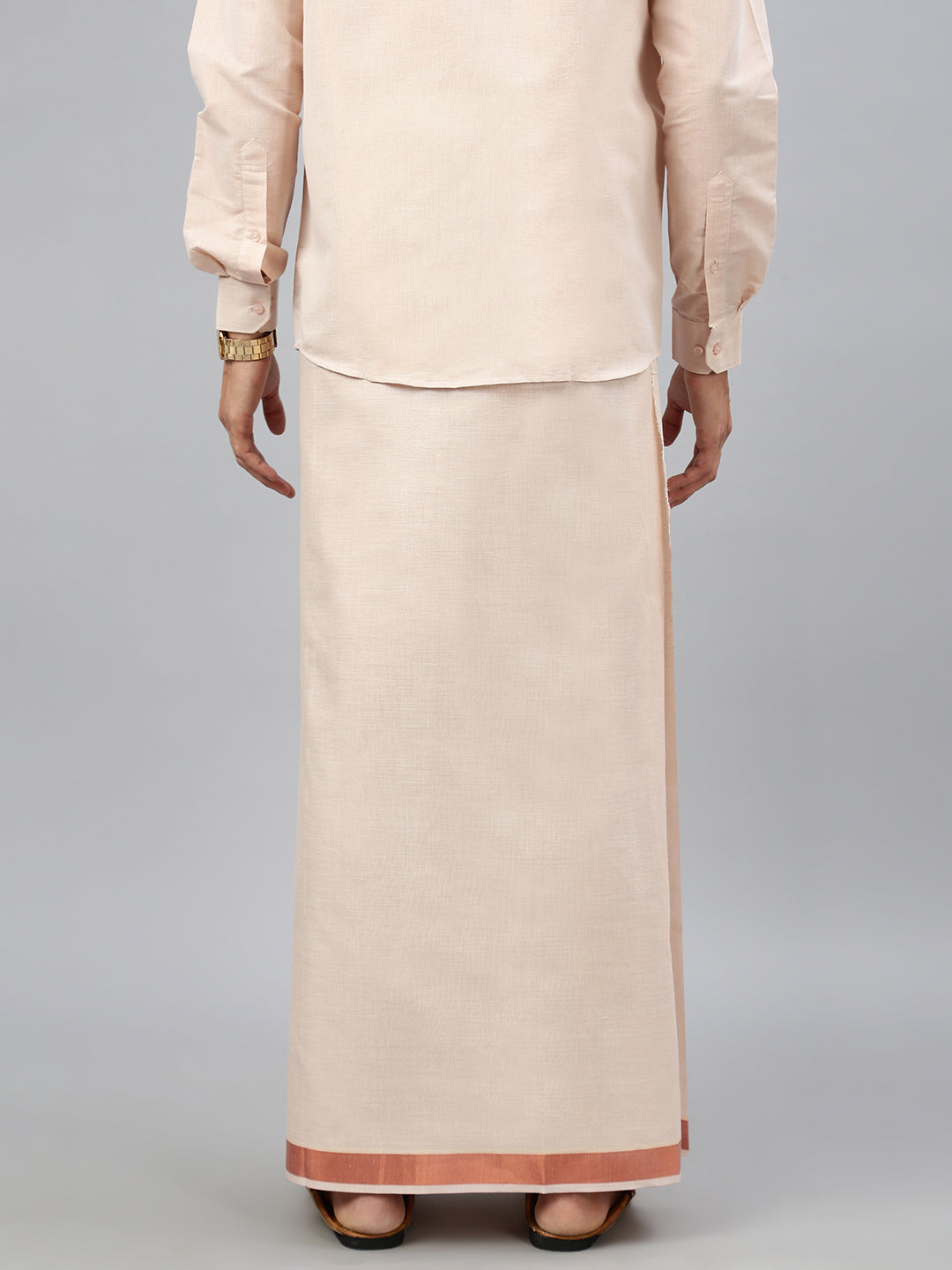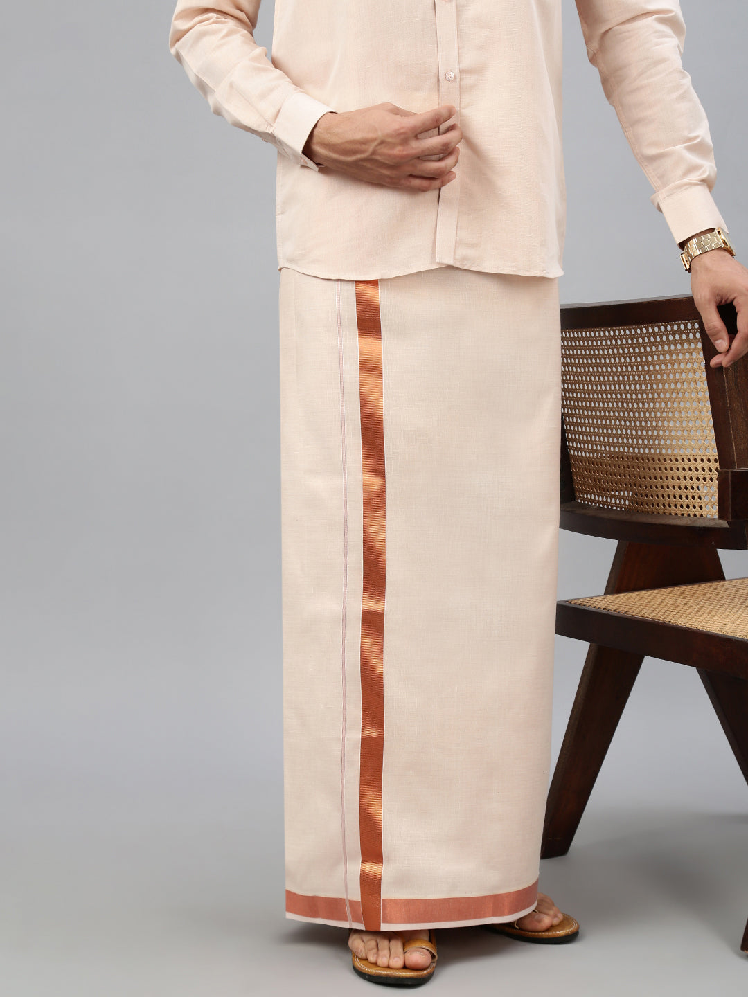 Men Tissue Single Layer Copper Dhoti with Jari Border