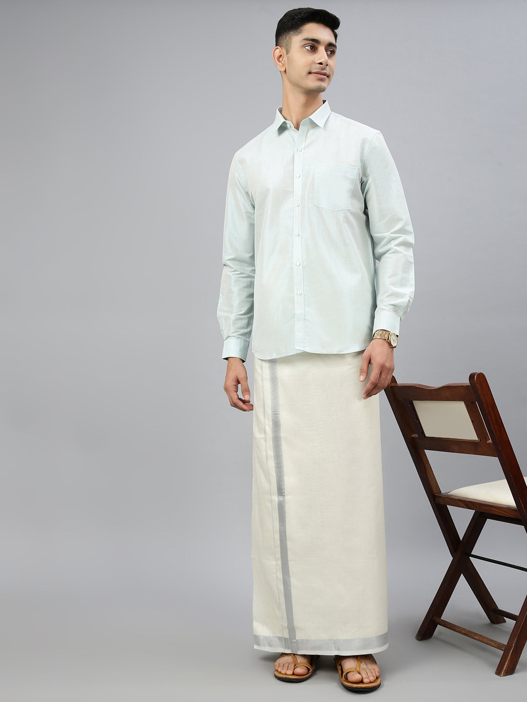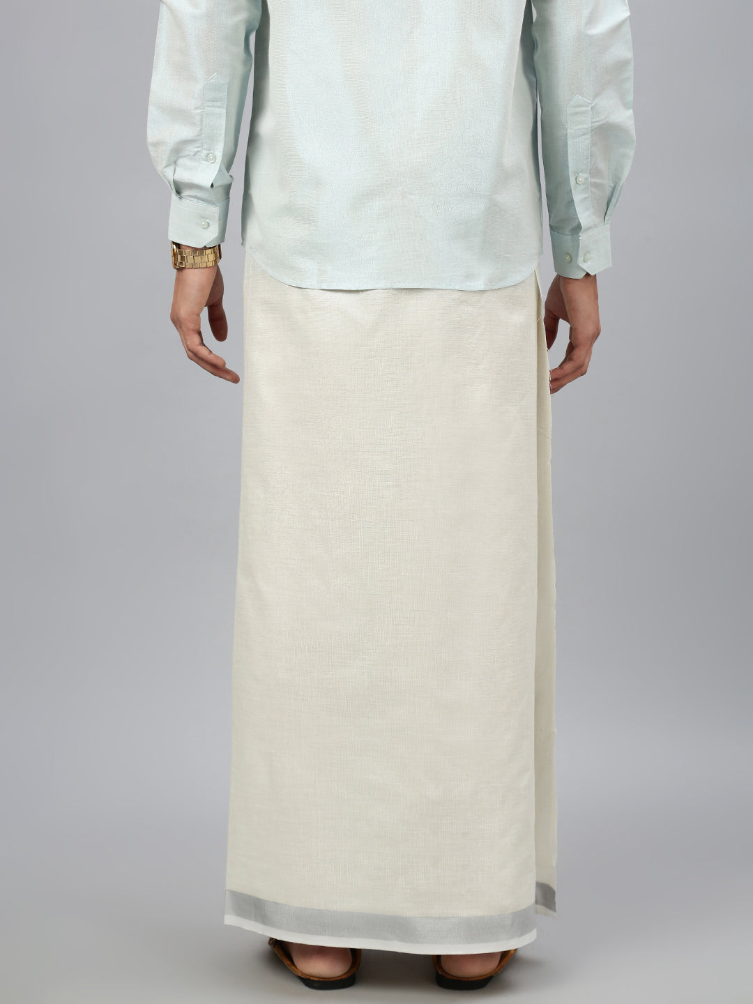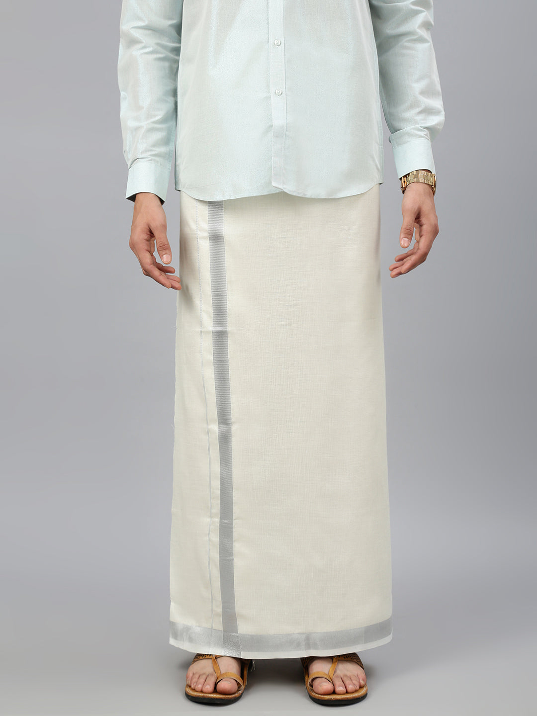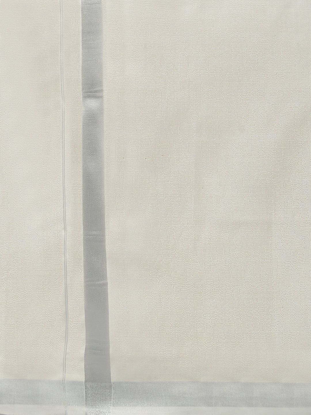 Men Tissue Single Layer Silver Dhoti with Jari Border