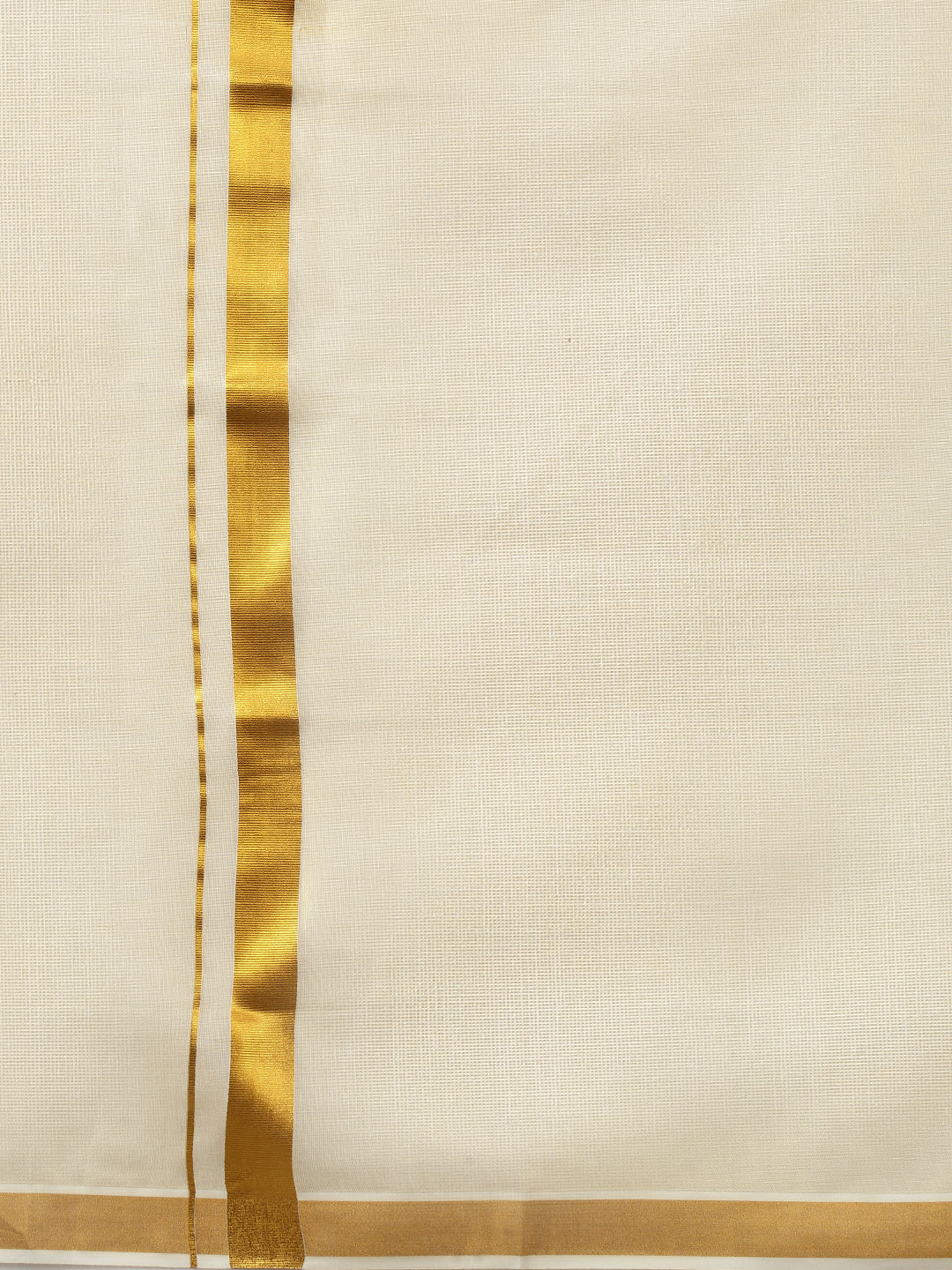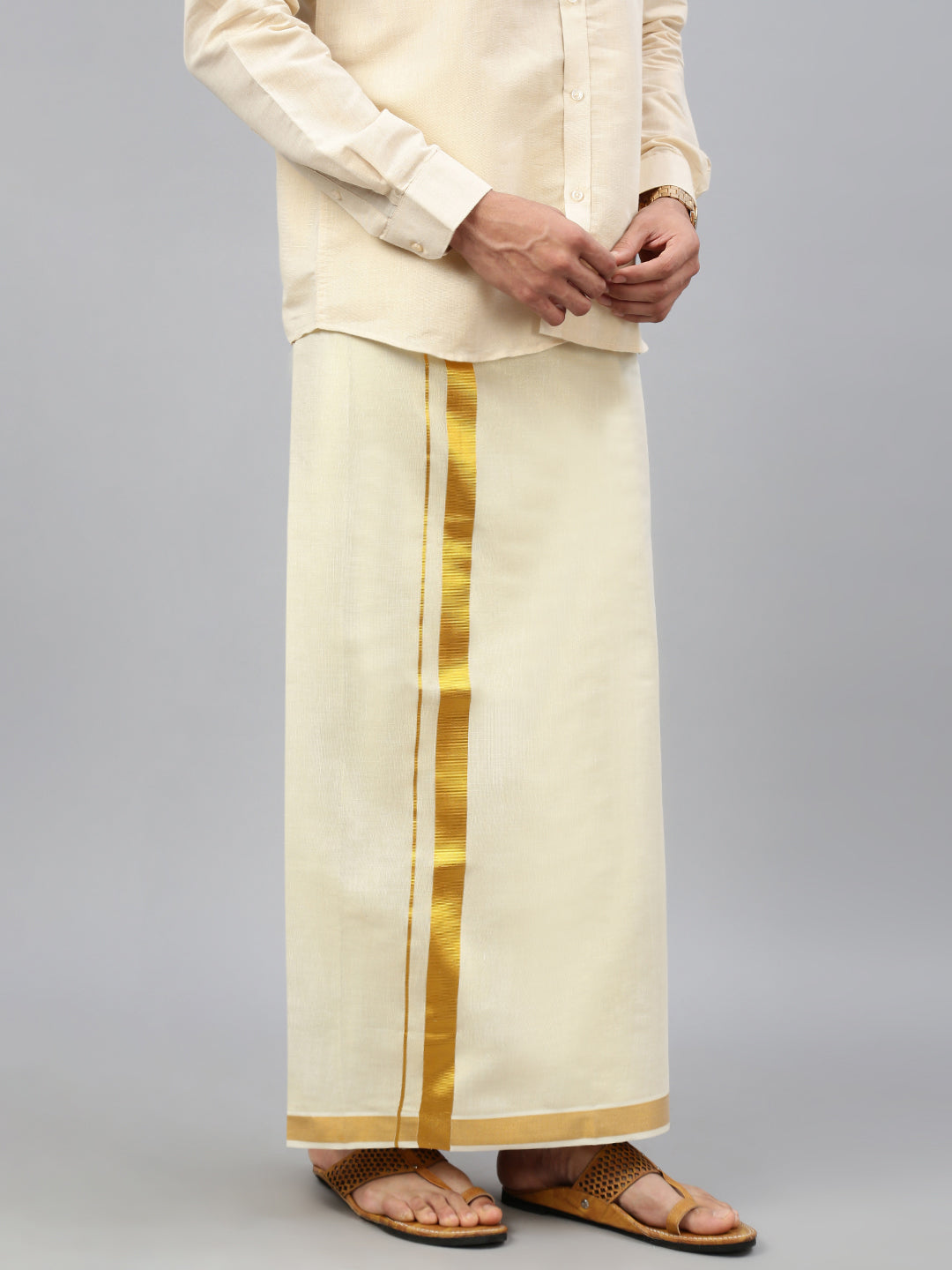Men Tissue Single Layer Gold Dhoti with Jari Border