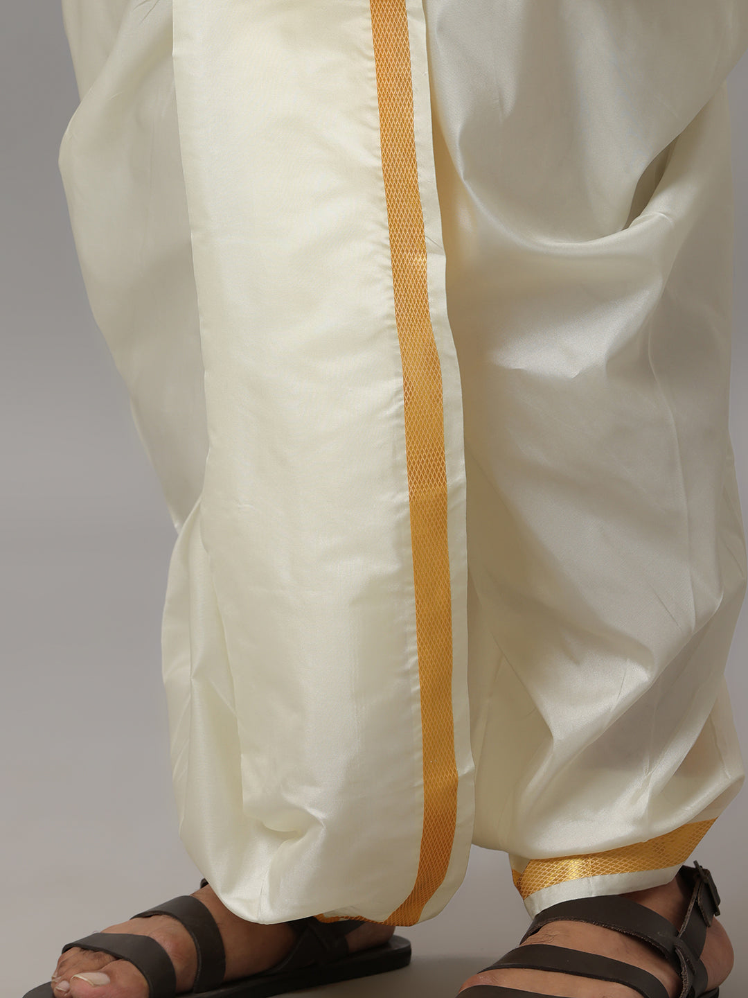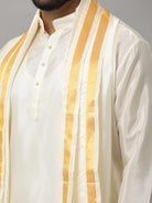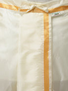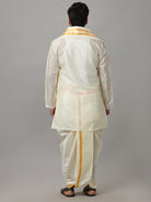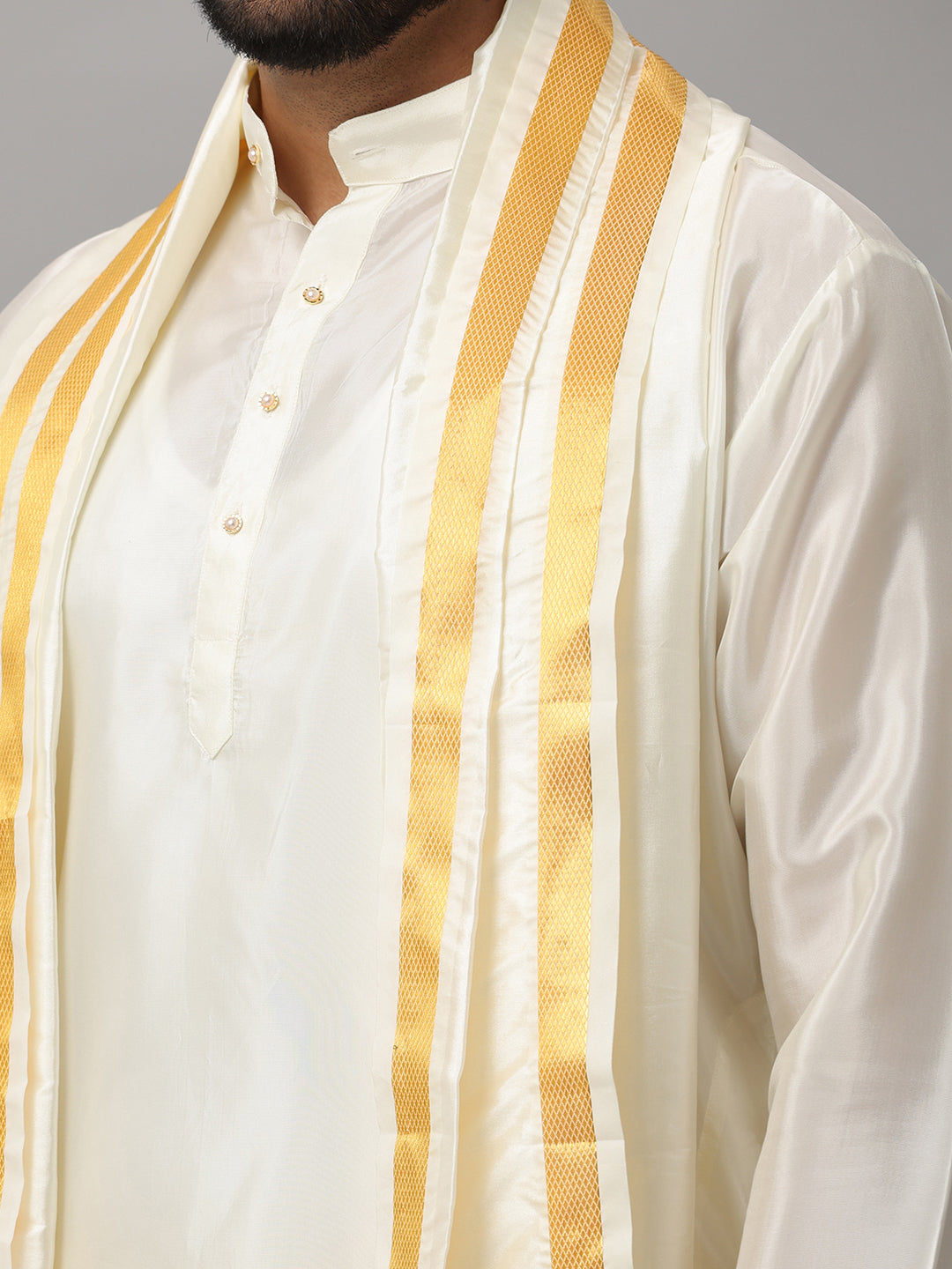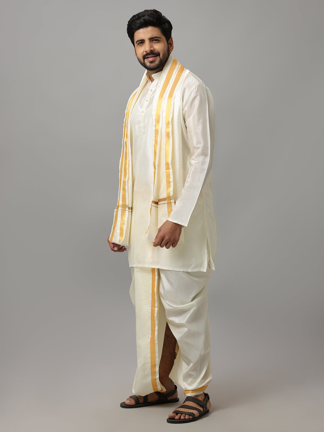 Men Art Silk Wedding Set Readymade Kurta, Panchakacham & Towel Set Cream